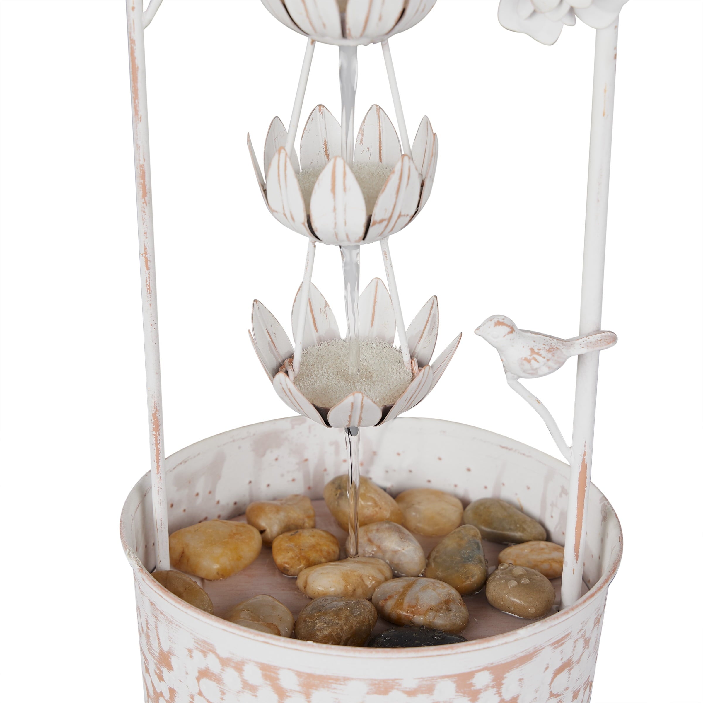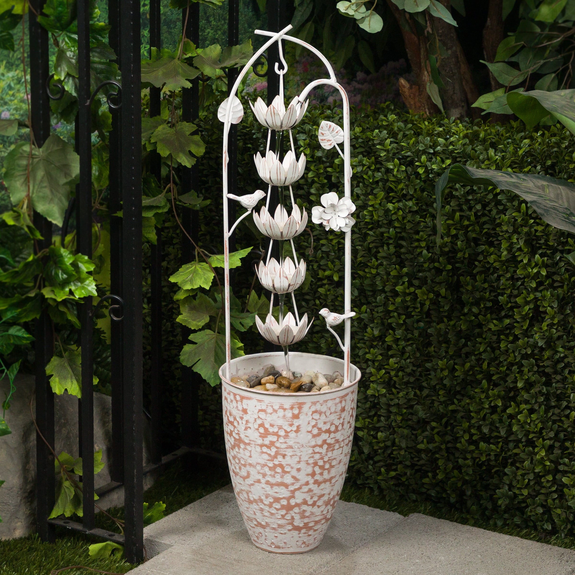 Home Fountains Alpine Corporation Metal White Rustic Outdoor Electric Fountain with Flower