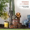 Add some rustic charm to your home and outdoor décor with Alpine?s line of fountains. Relax as you listen to the peaceful pour of water that cascades down as you enjoy a glass of lemonade on a warm sunny afternoon. Full of rustic charm, this Alpine fountain will bring a little bit of country to your indoor or outdoor décor.