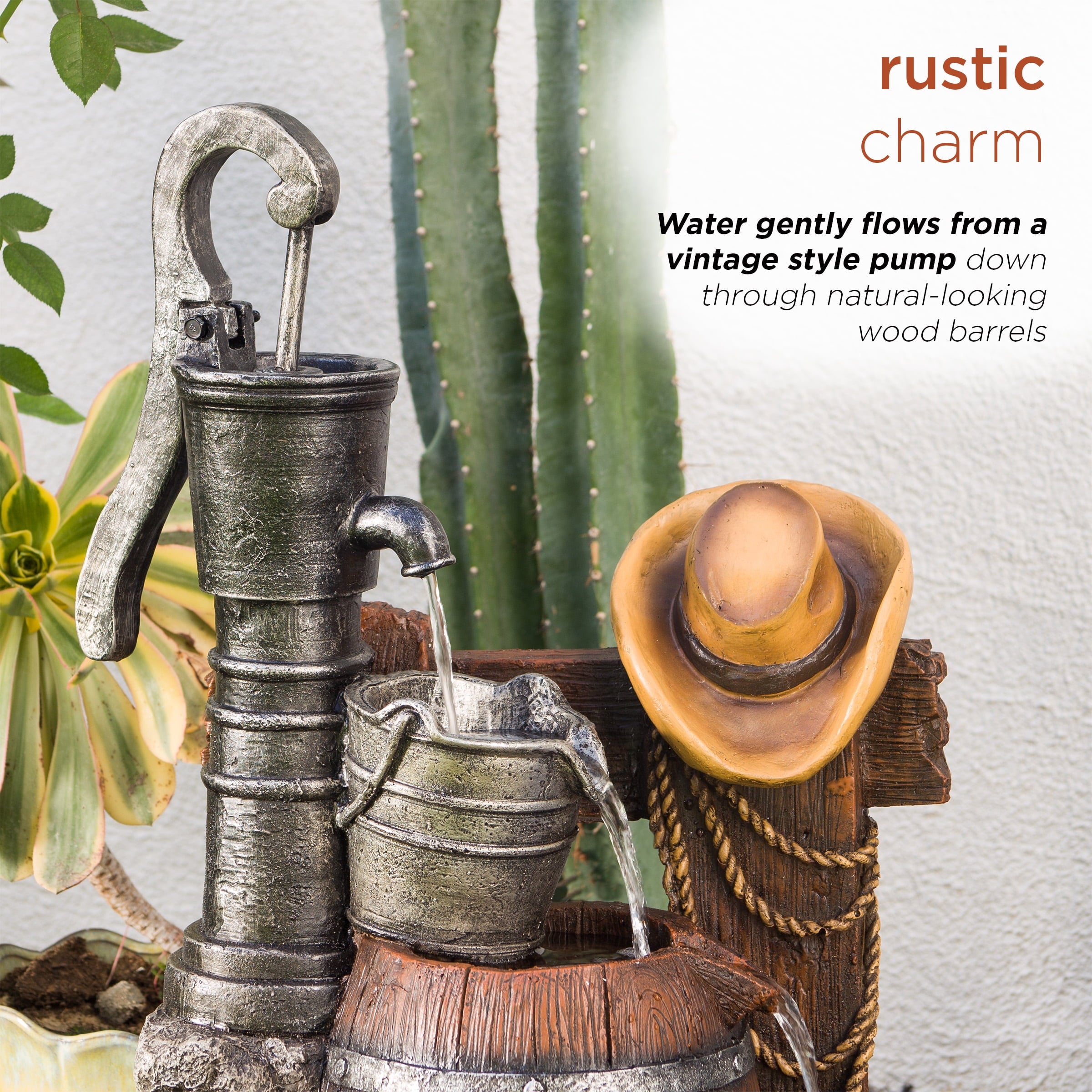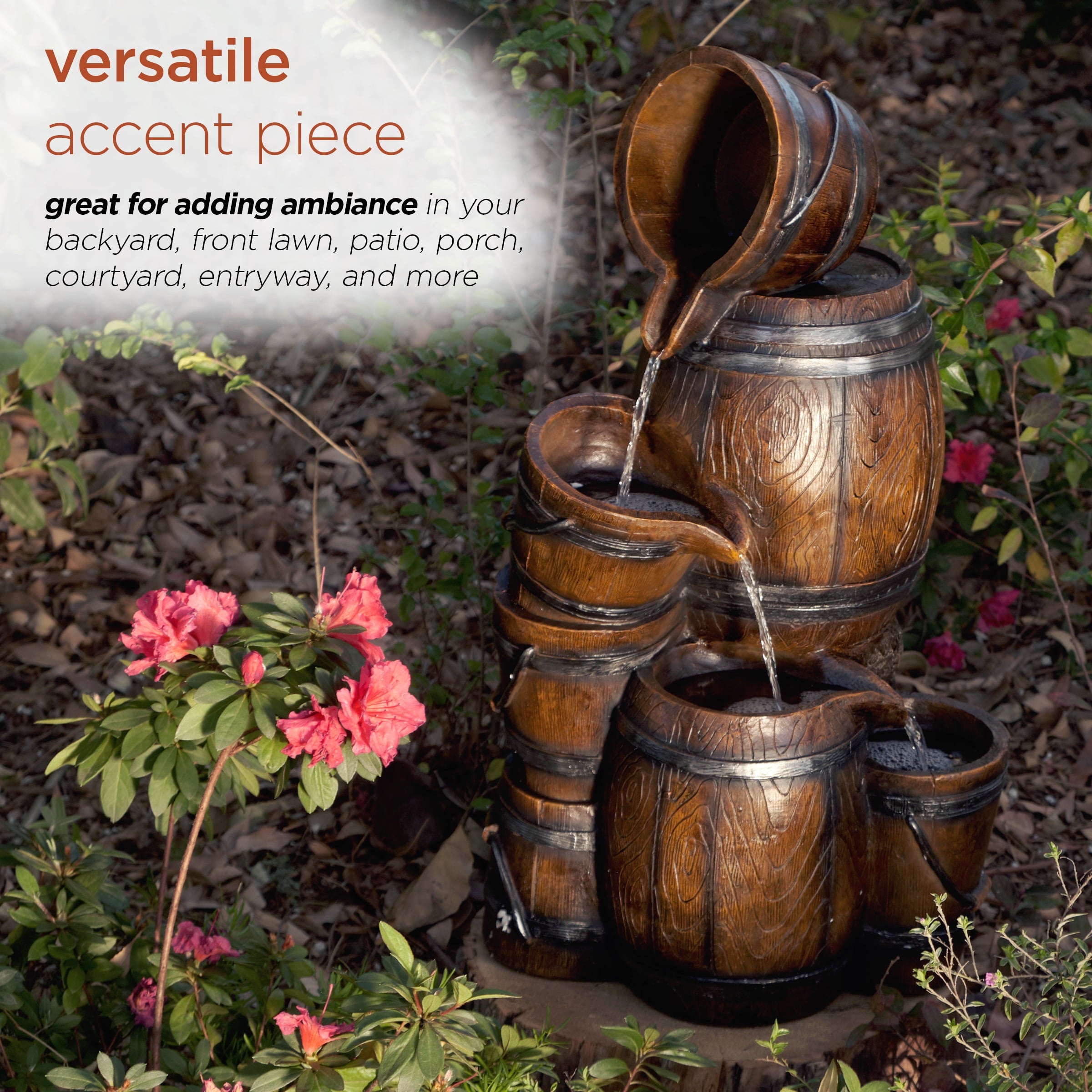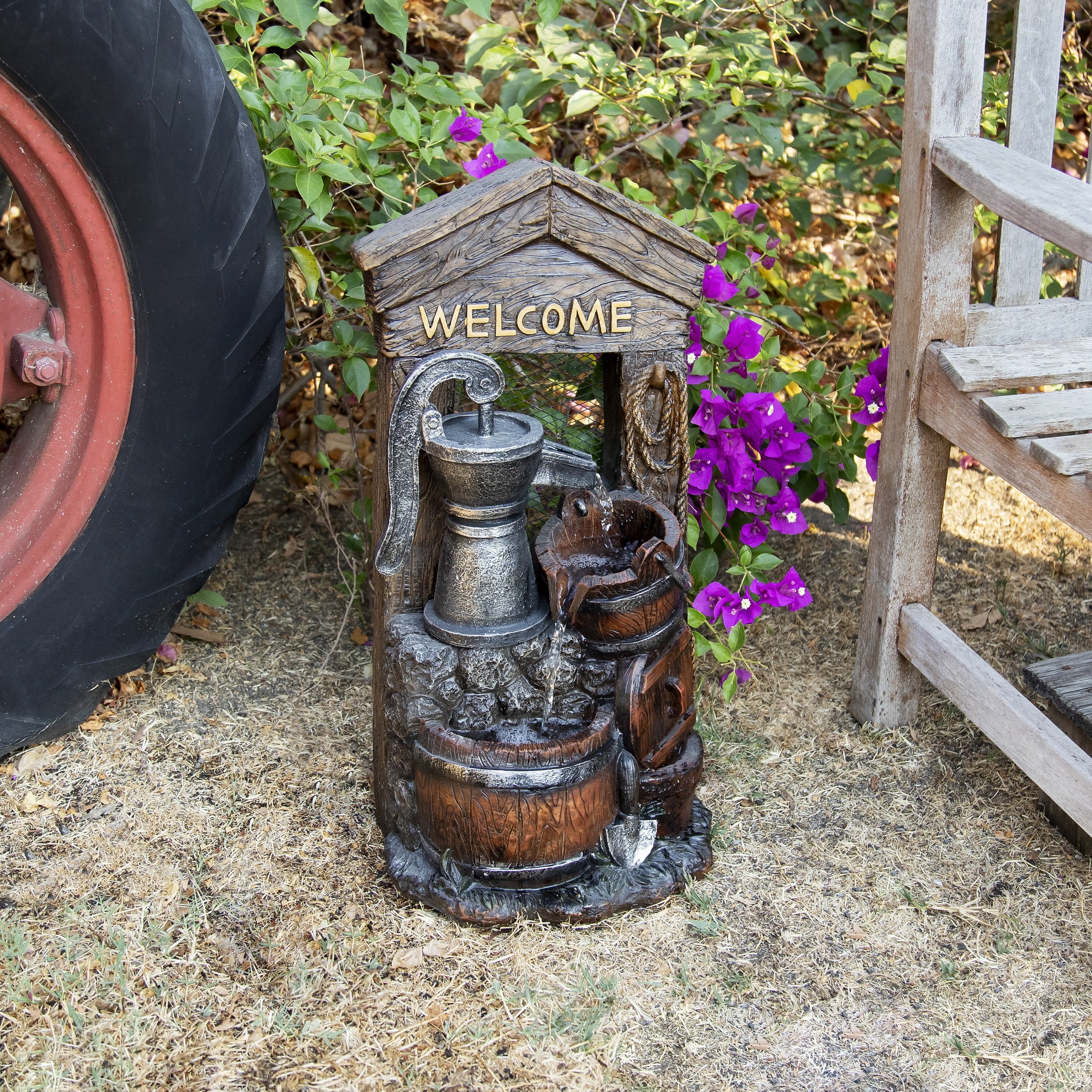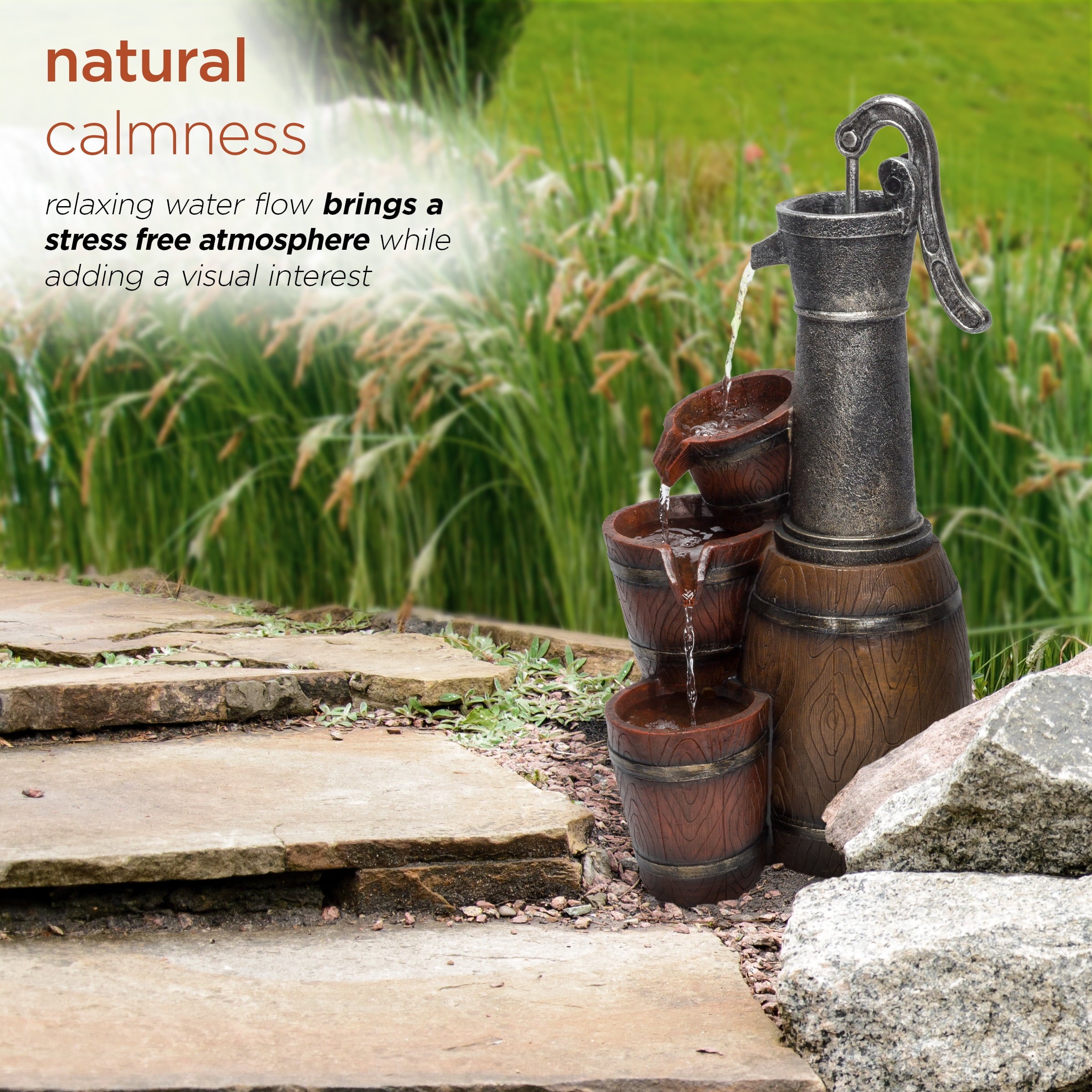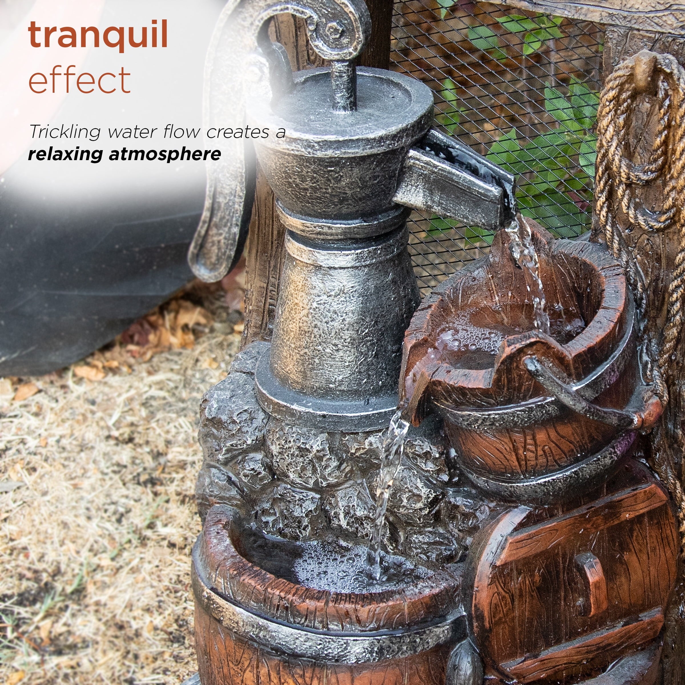 - The design adds a rustic look, while the relaxing, gentle water falling helps to bring in a natural element