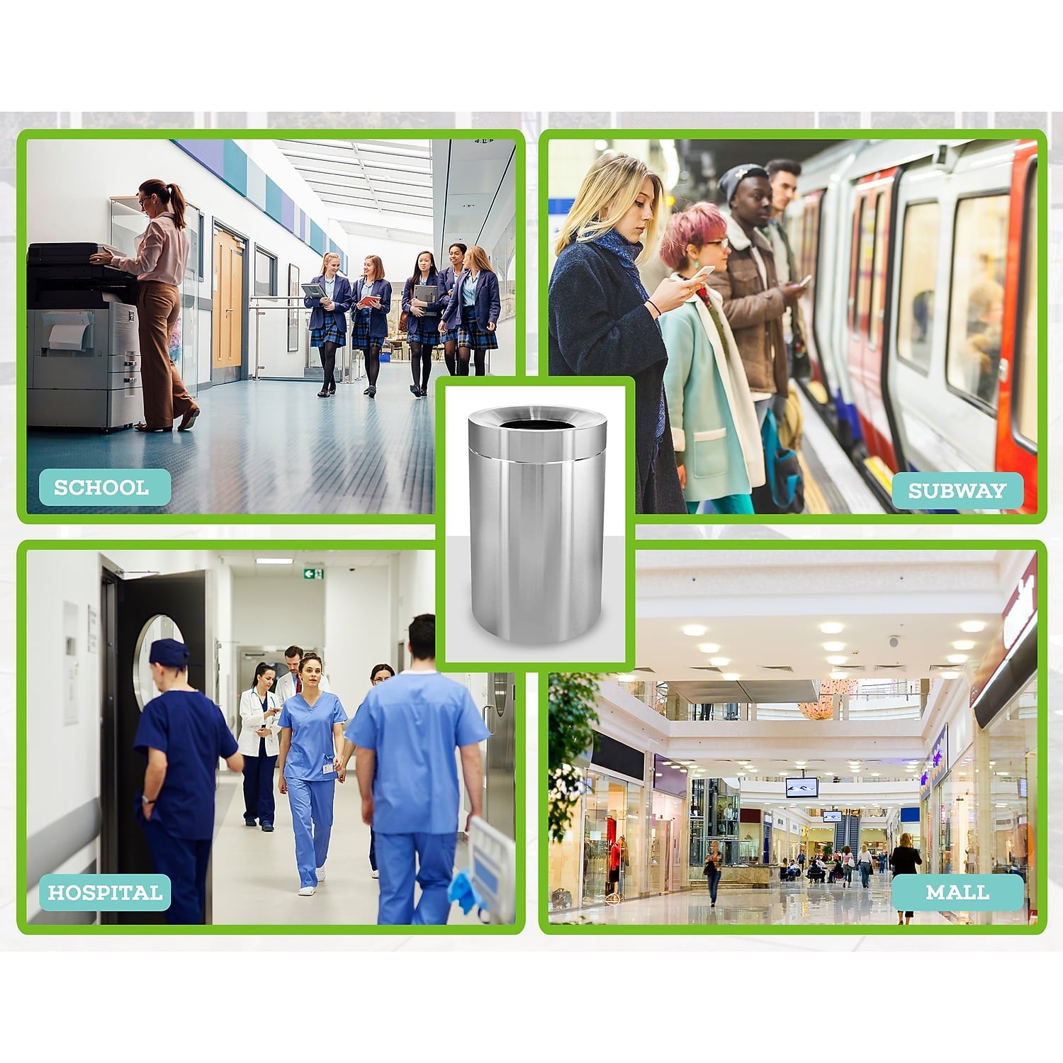 • Neat and professional in appearance. Ideal for high traffic areas. Open top lid.