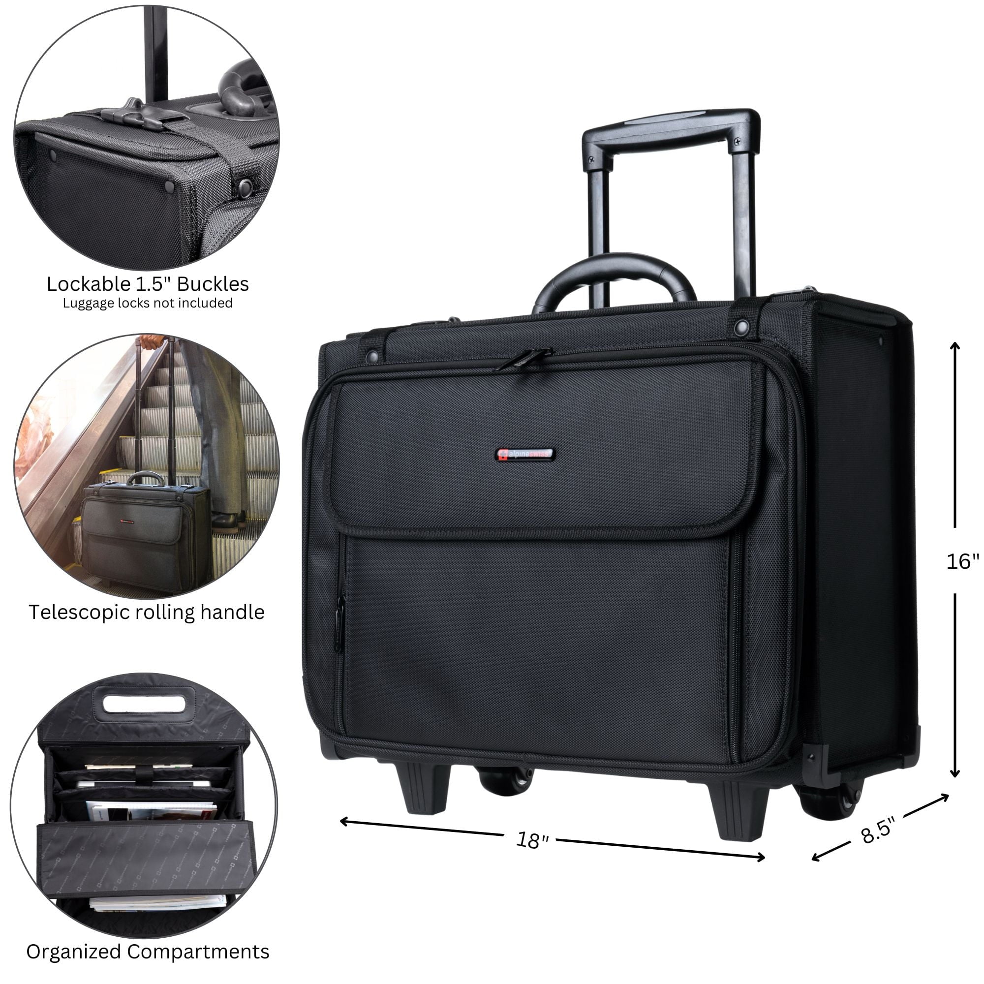 Home Briefcases Alpine Swiss Rolling Briefcase Laptop Bag For Men Women Hard Side Catalog Case Wheels Legal Dividers Lawyer Attache Case Carry-On Business Travel Bag