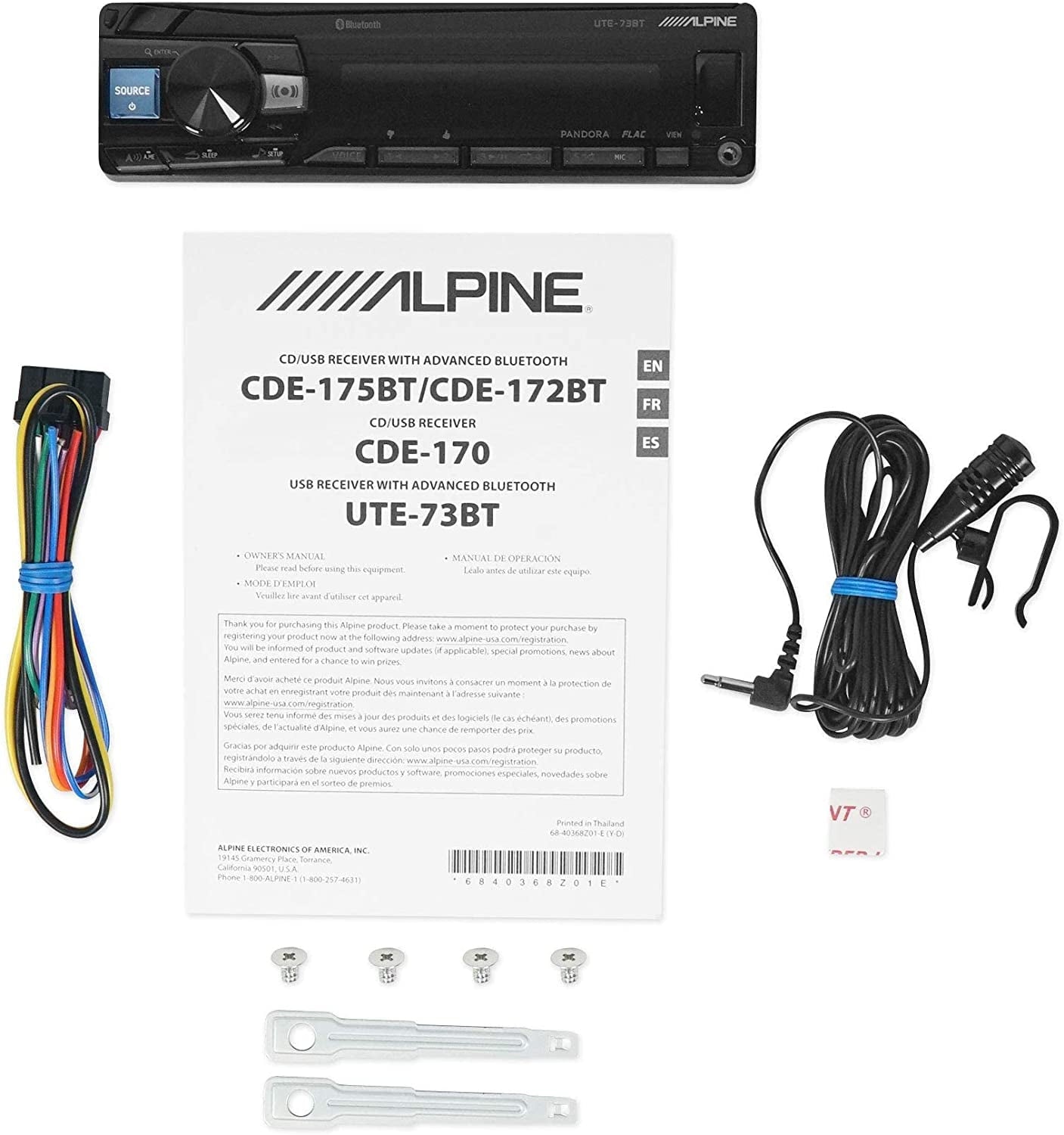 - ALPINE UTE-73BT Digital Media Bluetooth Car Stereo Receiver w/USB+Absolute AUX Cable