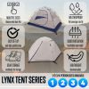 The ALPS Lynx 2 Tent is packed with features and high quality. The Lynx, which has aluminum poles and an awesome mesh construction – taking up half of the walls on each side allowing optimal ventilation. The tent is an easy to set up, 2 pole rectangular dome style tent with pole clips that easily fit over the poles for quick assembly. ALPS has not cut any corners… between the factory sealed fly and floor seams, weatherproof fly buckles, 2 doors for easy entering and leaving, 2 vestibules for extra gear storage and weather protection, and extra-large #8 zippers, you’re sure to find everything you could want in a tent in the Lynx 2.