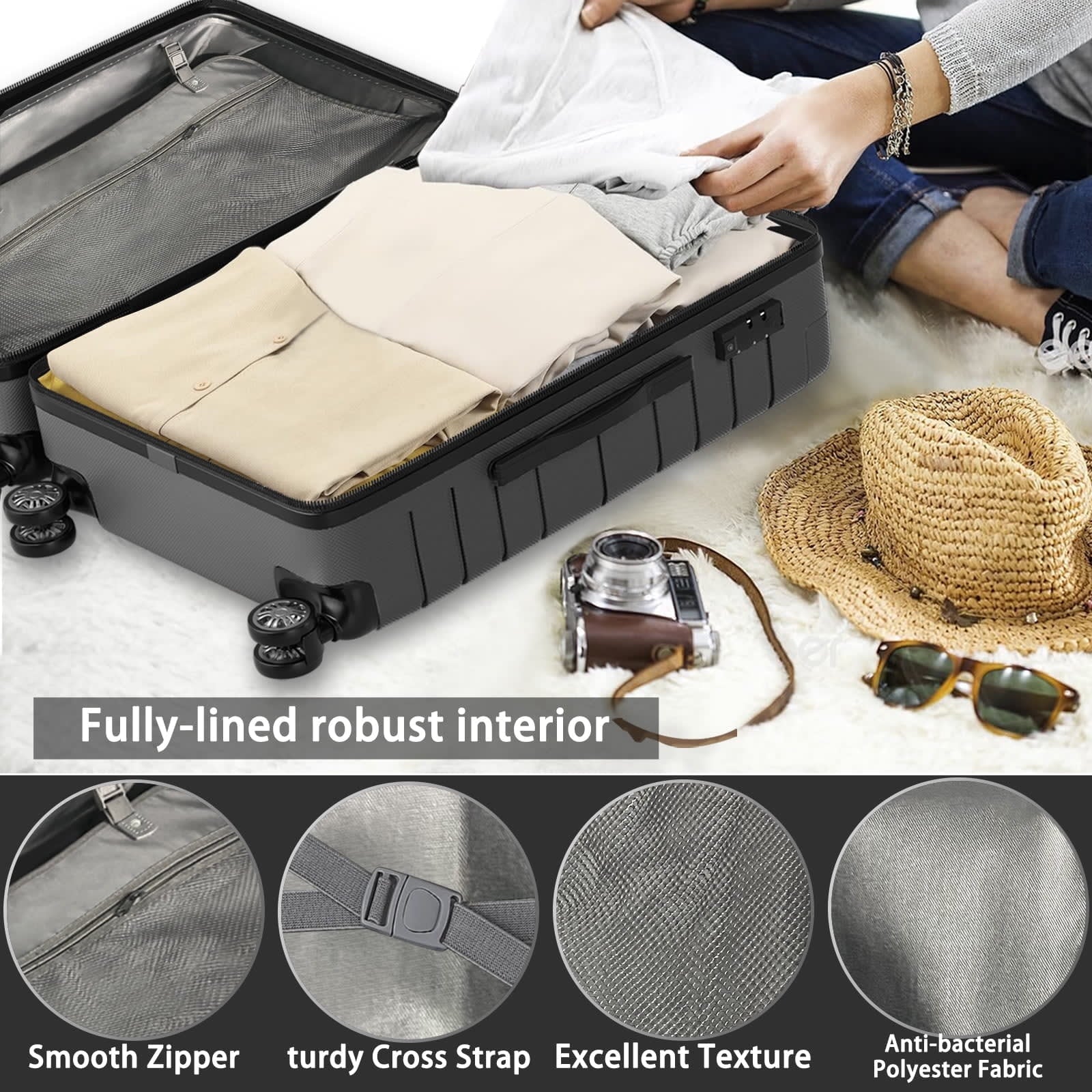 • 【Size:22inch 24inch 28inch】Three suitcases of different sizes can be used for many purposes.