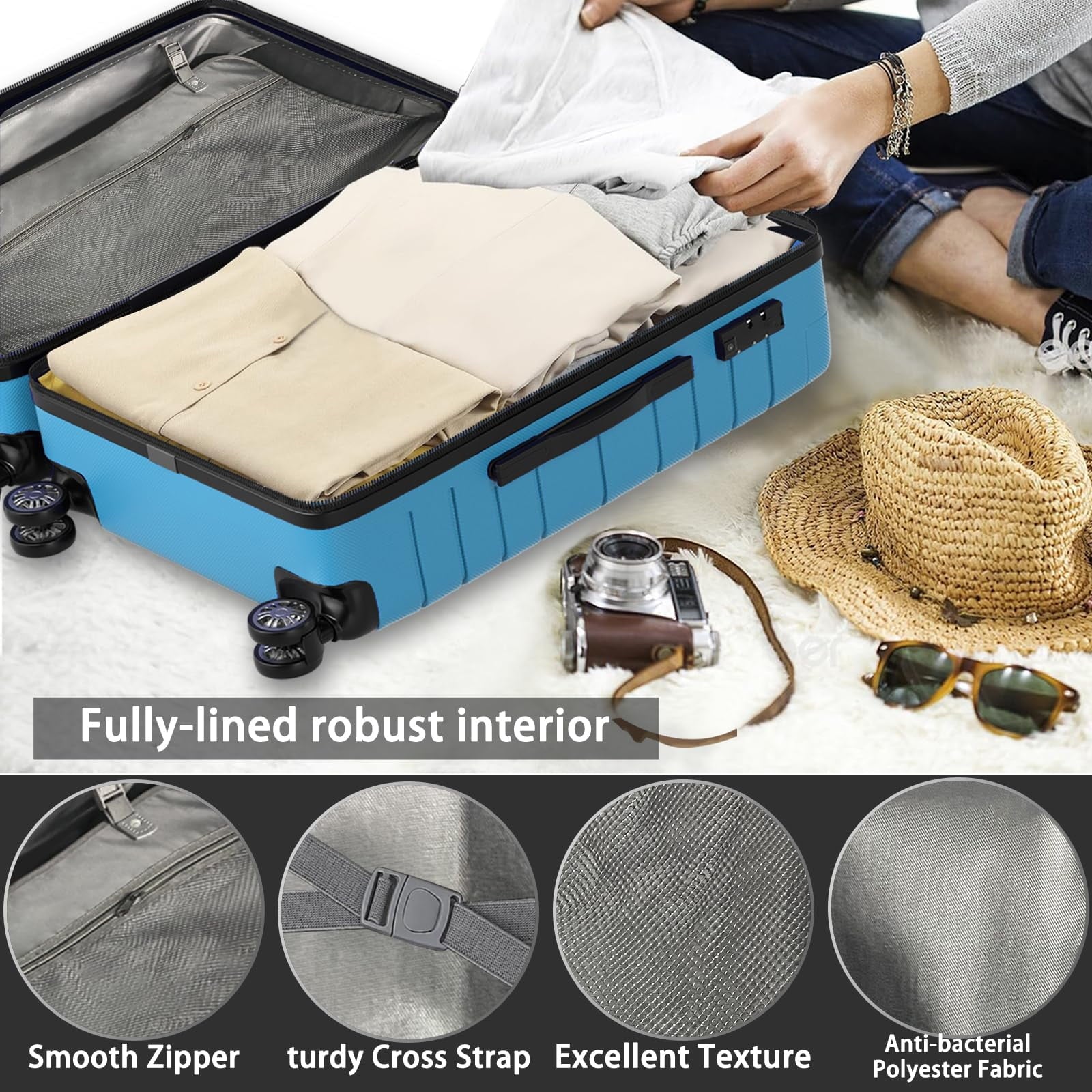 • 【Enhanced Security】The built-in recessed TSA-approved lock, situated on the side of the suitcase, exclusively allows TSA personnel to inspect your luggage without compromising the lock’s integrity. The default combination is 0-0-0. The durable zippers are resistant to piercing, ensuring enhanced protection for your belongings and personal privacy.
