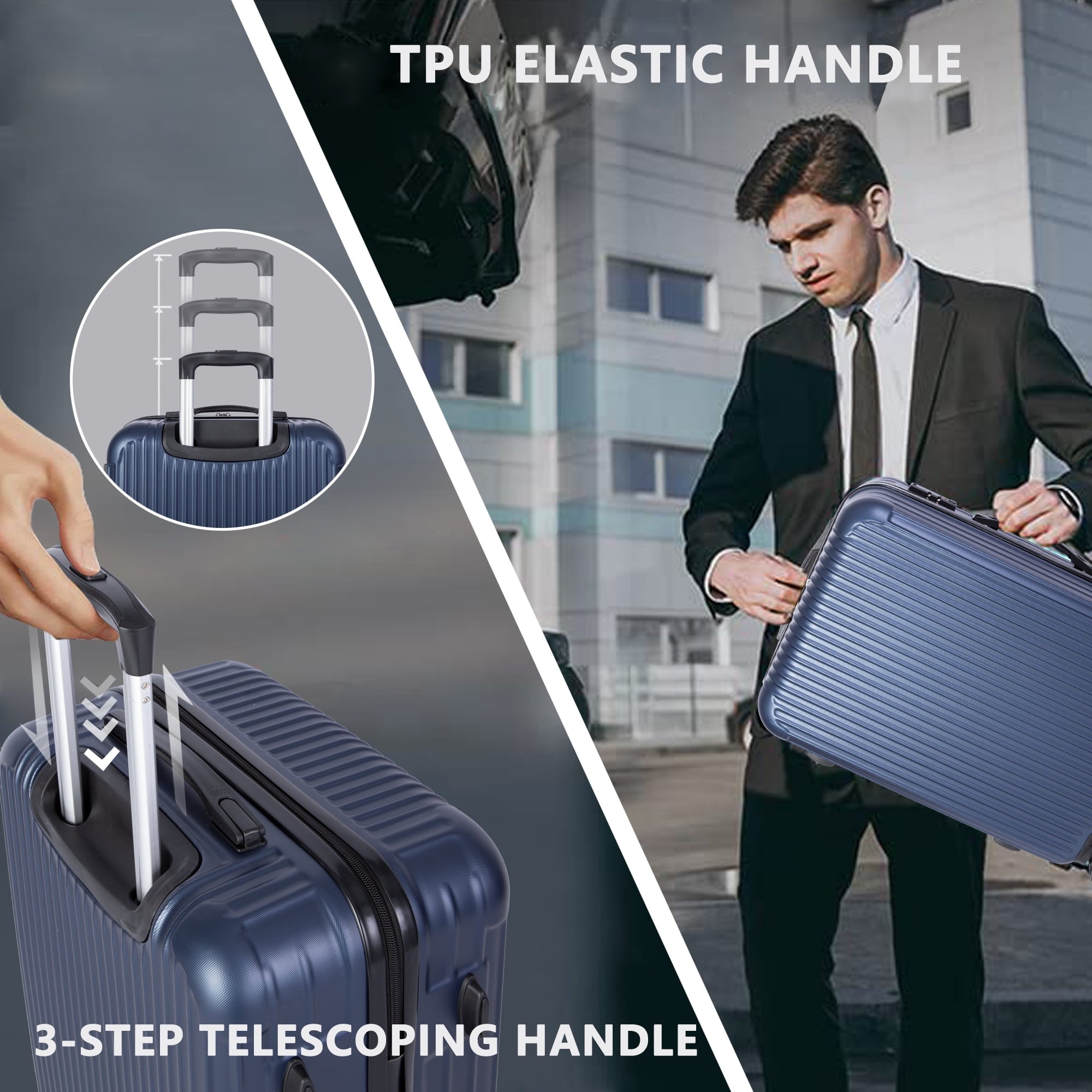 • 【Luggage Sets】Our 3-piece luggage set is expertly crafted from upgraded PC+ABS material, ensuring resilience against stress, temperature variations, and impacts. Reinforced corner guards provide an extra layer of defense, effectively minimizing potential luggage wear and tear.