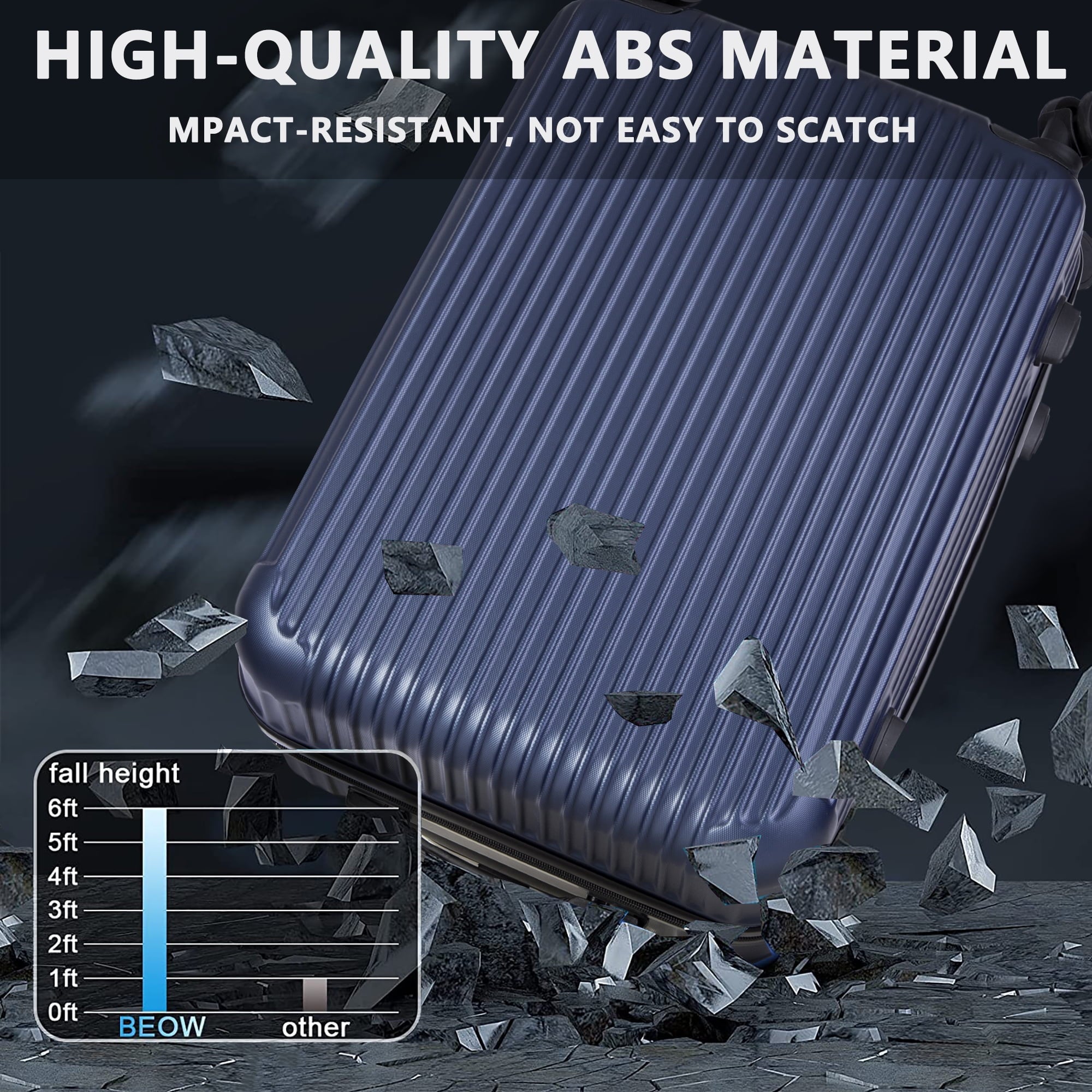 A complete line of luggage is the first choice for students, travel, business, and business. Stylish and trendy hardshell luggage set use super thick ABS material, which makes the luggage more durable. Unique style, wear and scratch resistance, front design with a beautiful diamond pattern of horizontal stripes, not only adds style to the hardshell luggage, but also enhances the strength and achieves overall durability. Textured finish to prevent scratches and keep it beautiful after travel. Make packing clothes easy with the interior fully lined with multi-use organizational pockets.