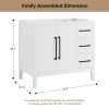 - Features 3 soft-closing drawers with dovetail joints and 2 soft-closing doors to maximize bathroom storage space