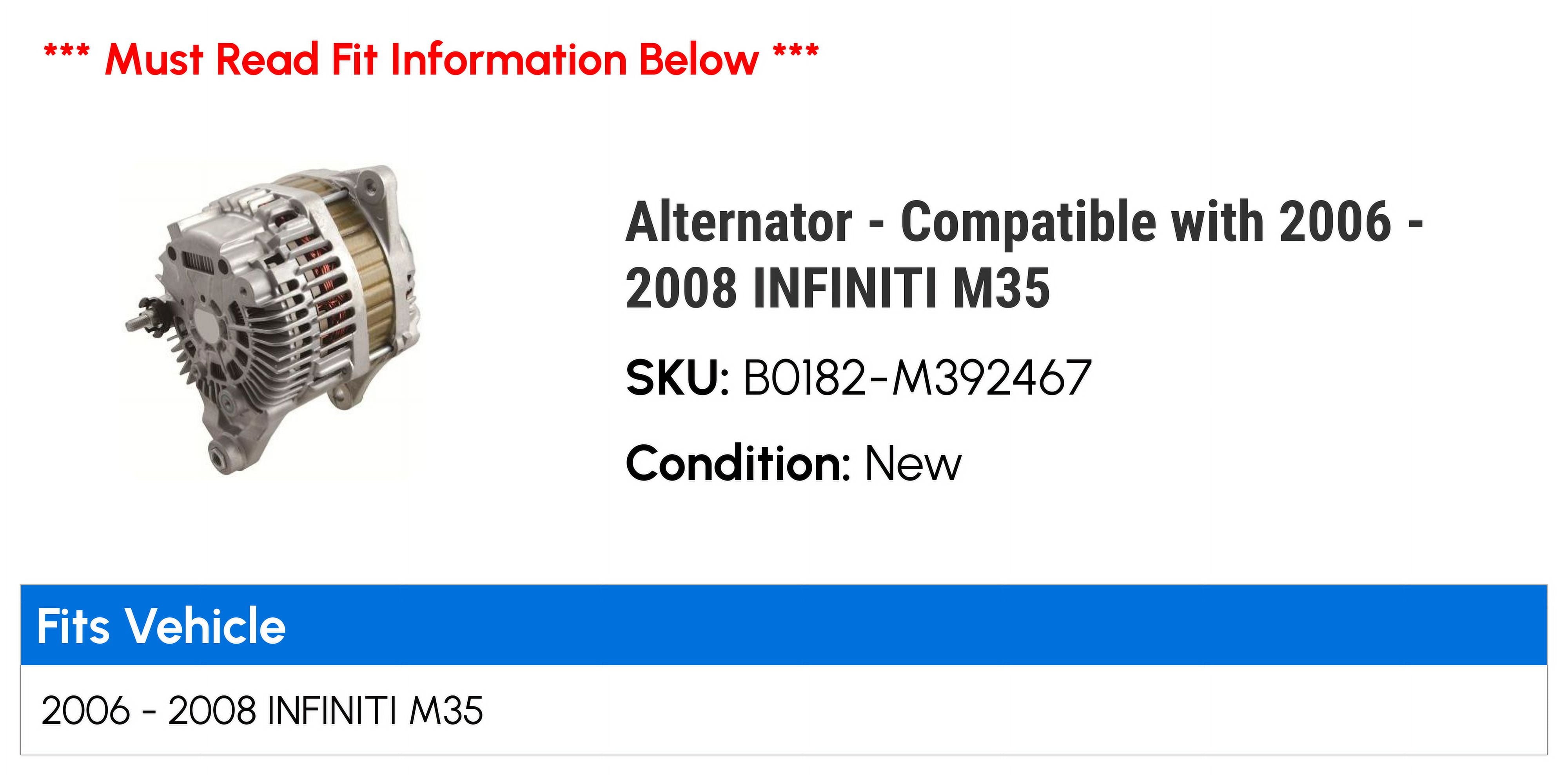 Alternator - Compatible with 2006 - 2008 INFINITI M35 2007
