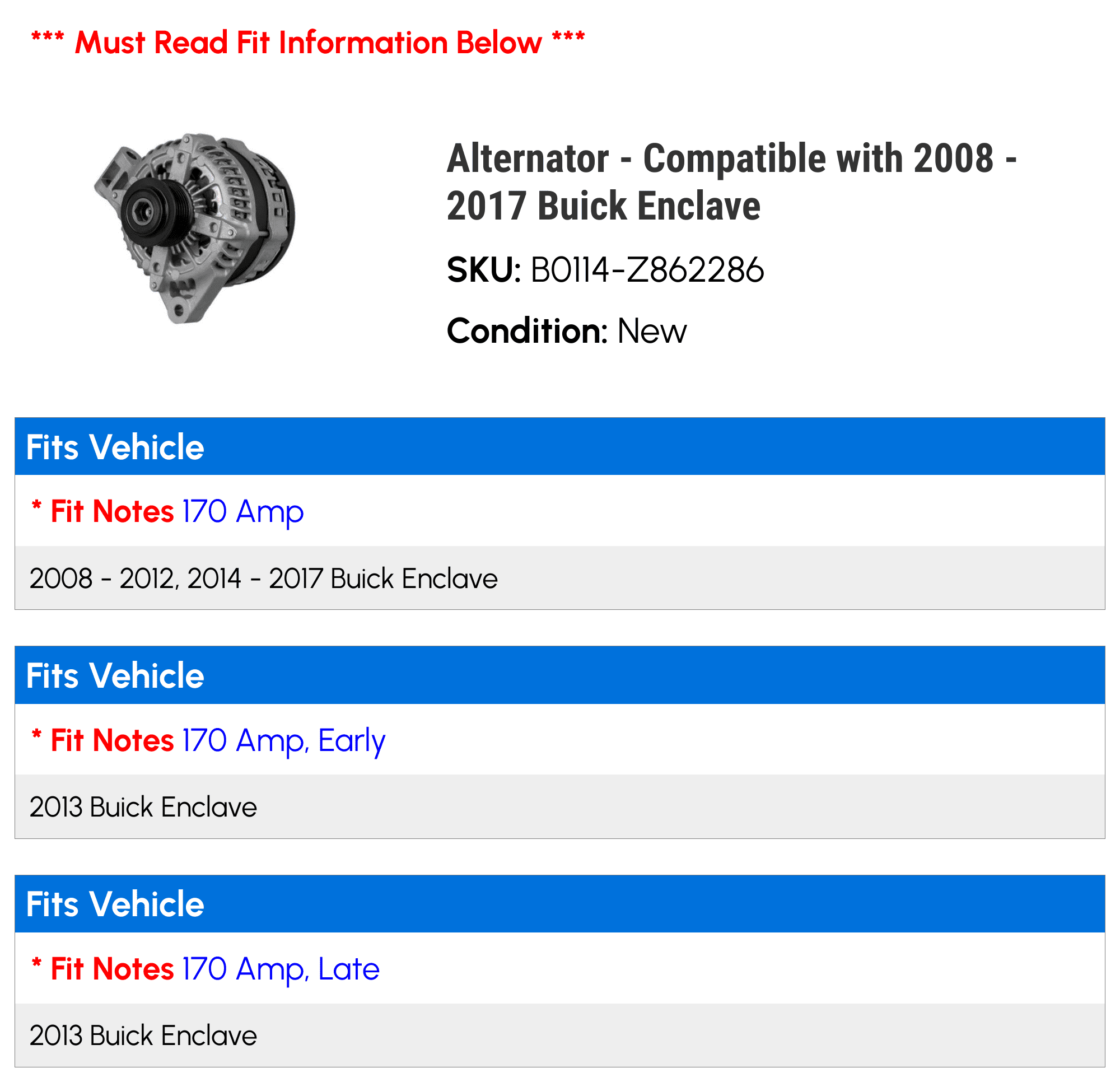 Alternator – Compatible with 2008 – 2017 Buick Enclave
