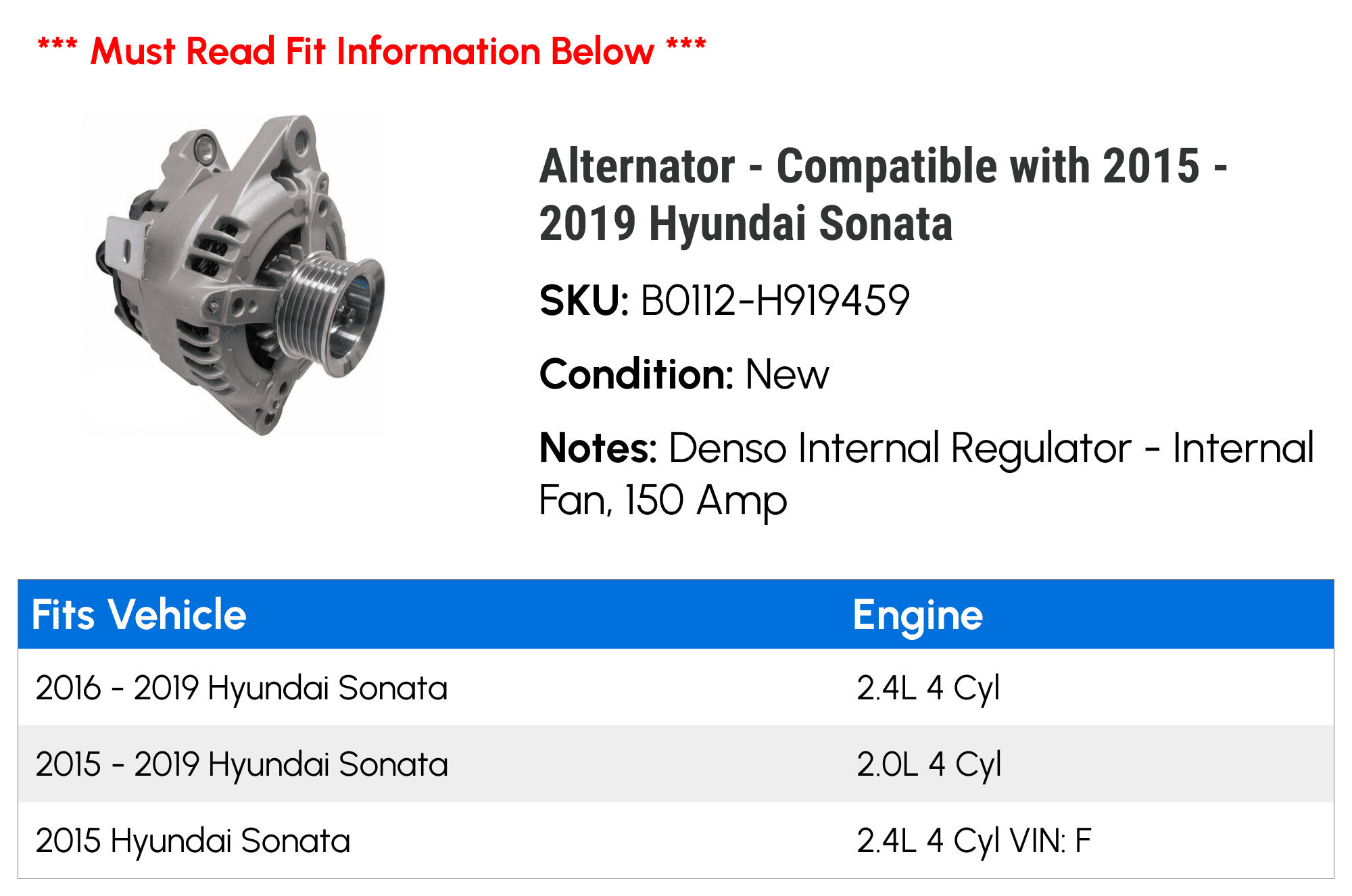 Alternator – Compatible with 2015 – 2019 Hyundai Sonata