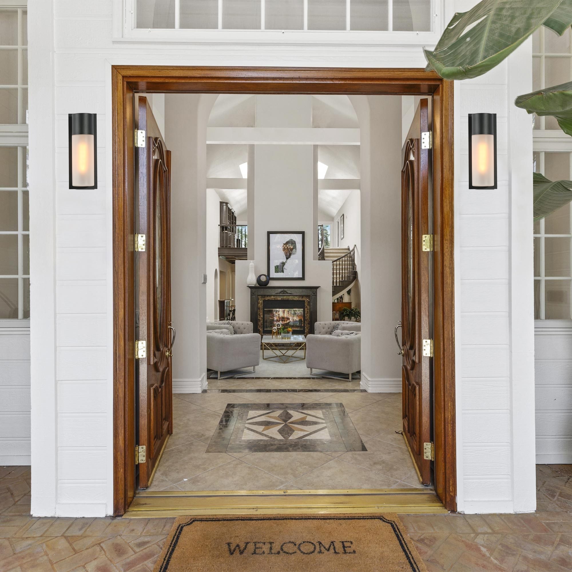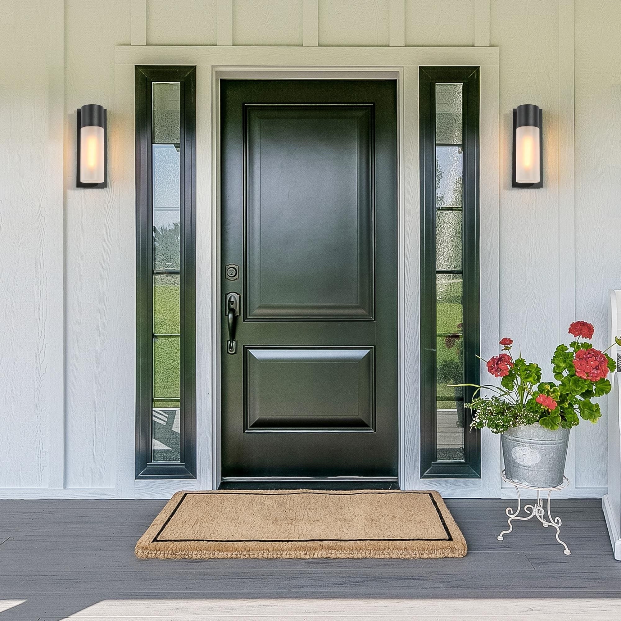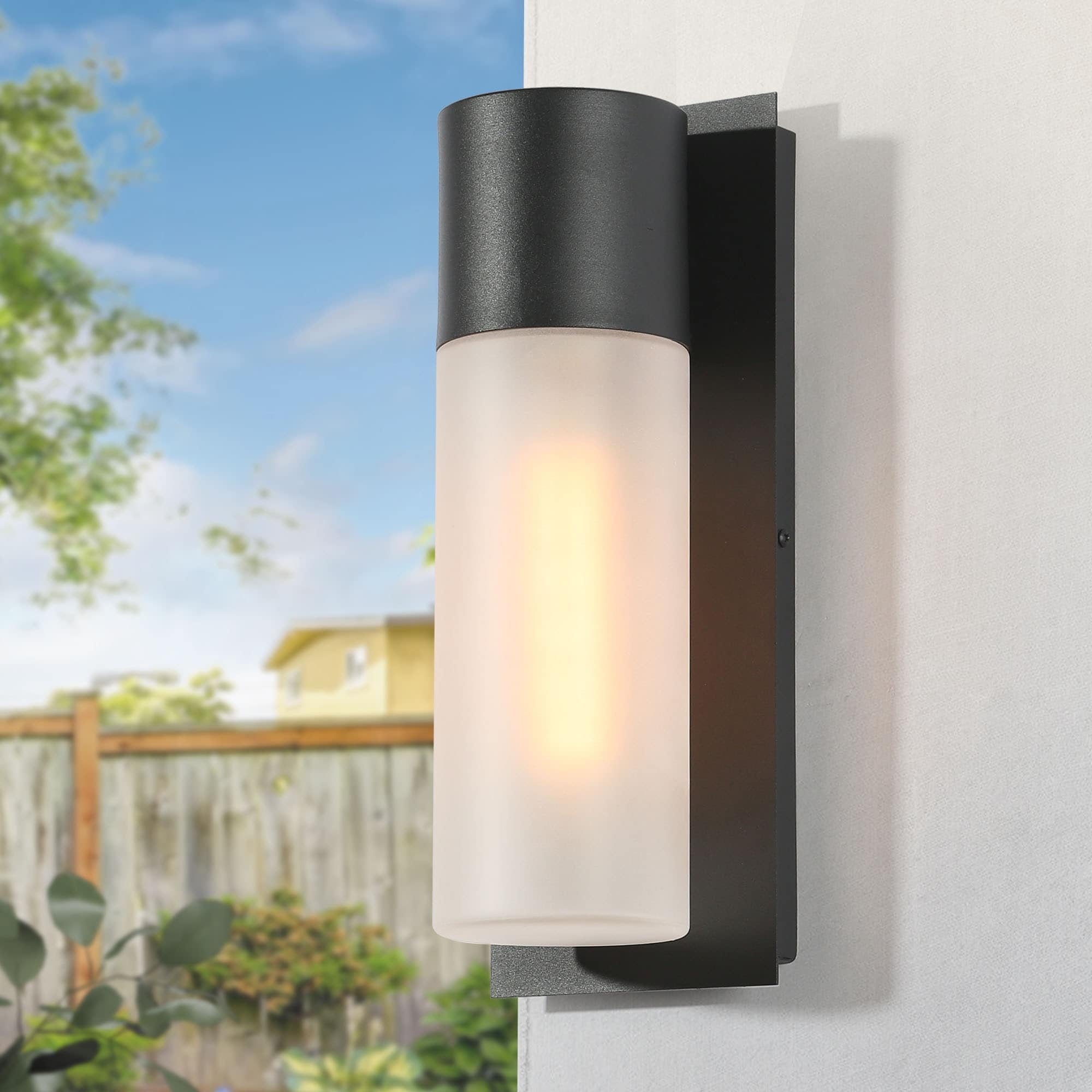 Illuminate your outdoor space with style and functionality using our Black Glass Outdoor Cylinder Wall Sconce. Enhance your home’s curb appeal and create an inviting ambiance for your guests. This outdoor wall light comes in a cylinder glass shade and an aluminum alloy body for a clean and classic look. The backplate has a textured black finish and the light is beautifully diffused through an opal-white glass shade. Its weather-resistant construction ensures long-lasting performance, making it suitable for outdoor areas such as patios, porches, and entryways. Please note that this fixture has NO Solar function and motion sensor.