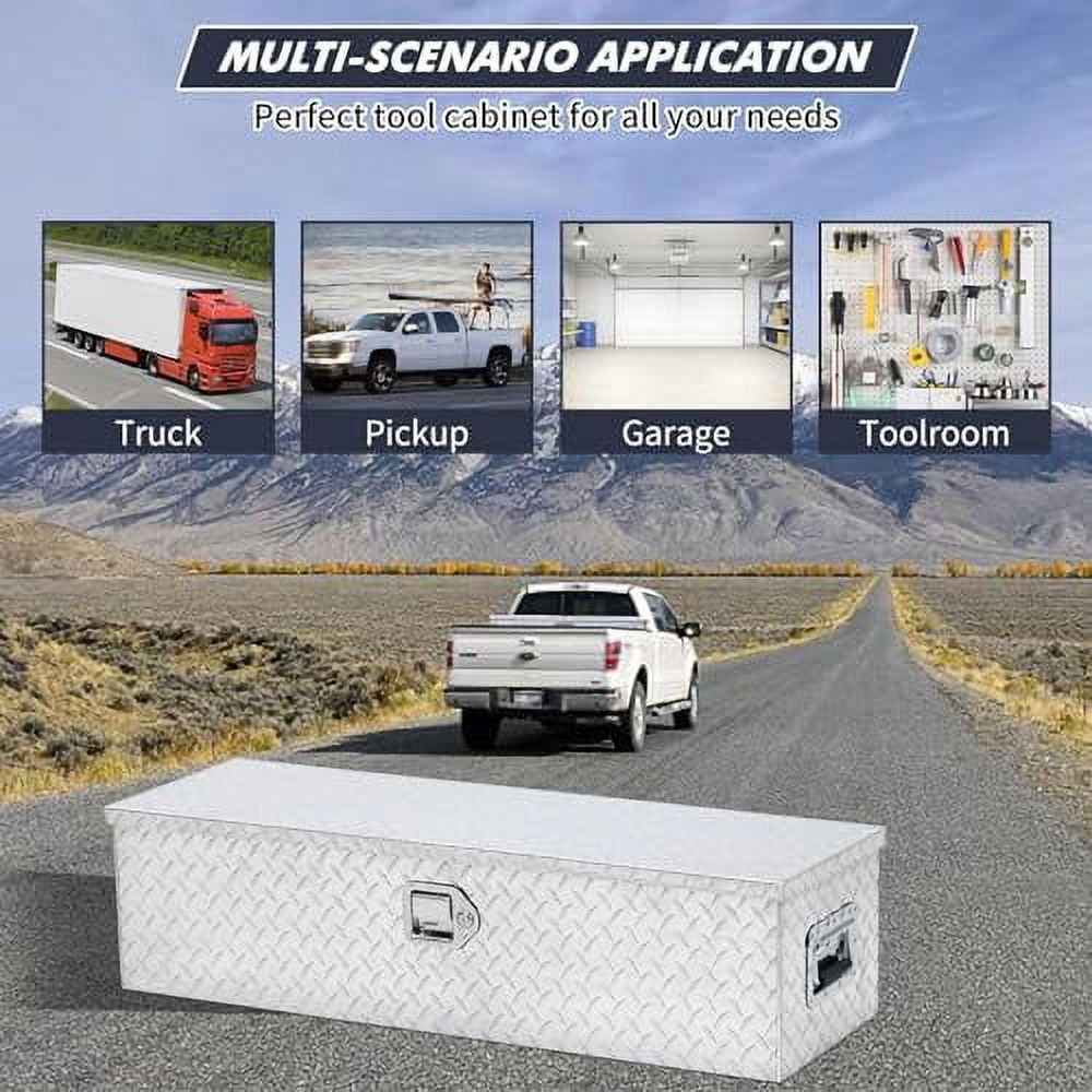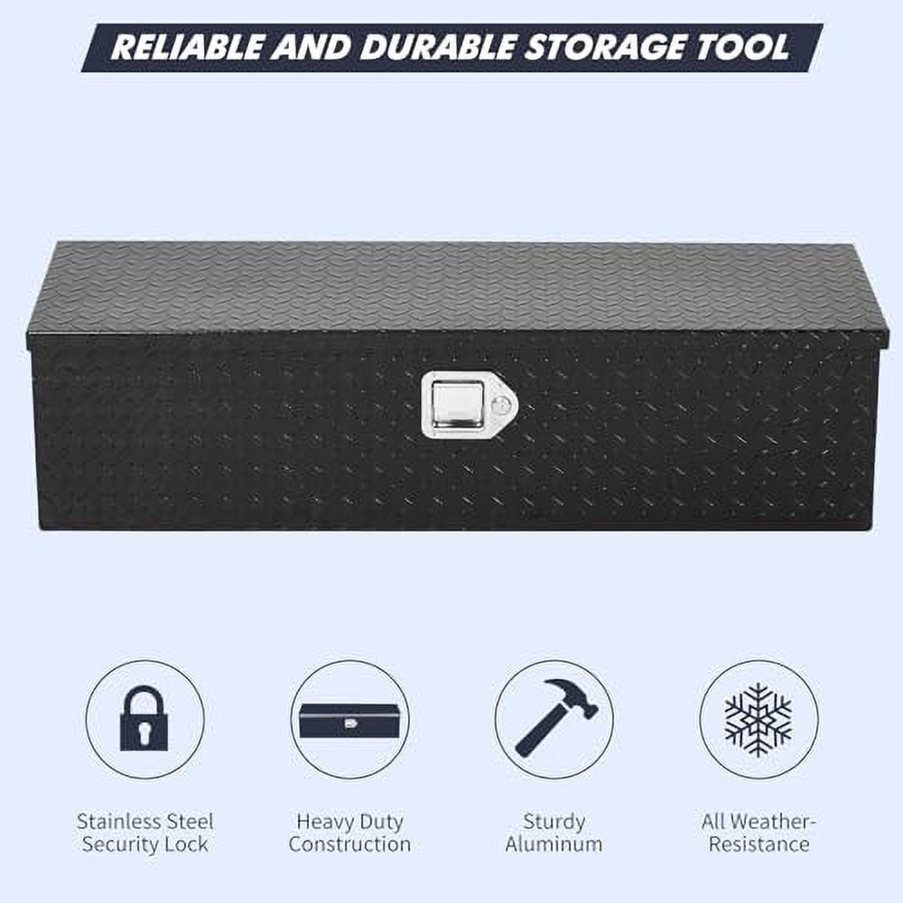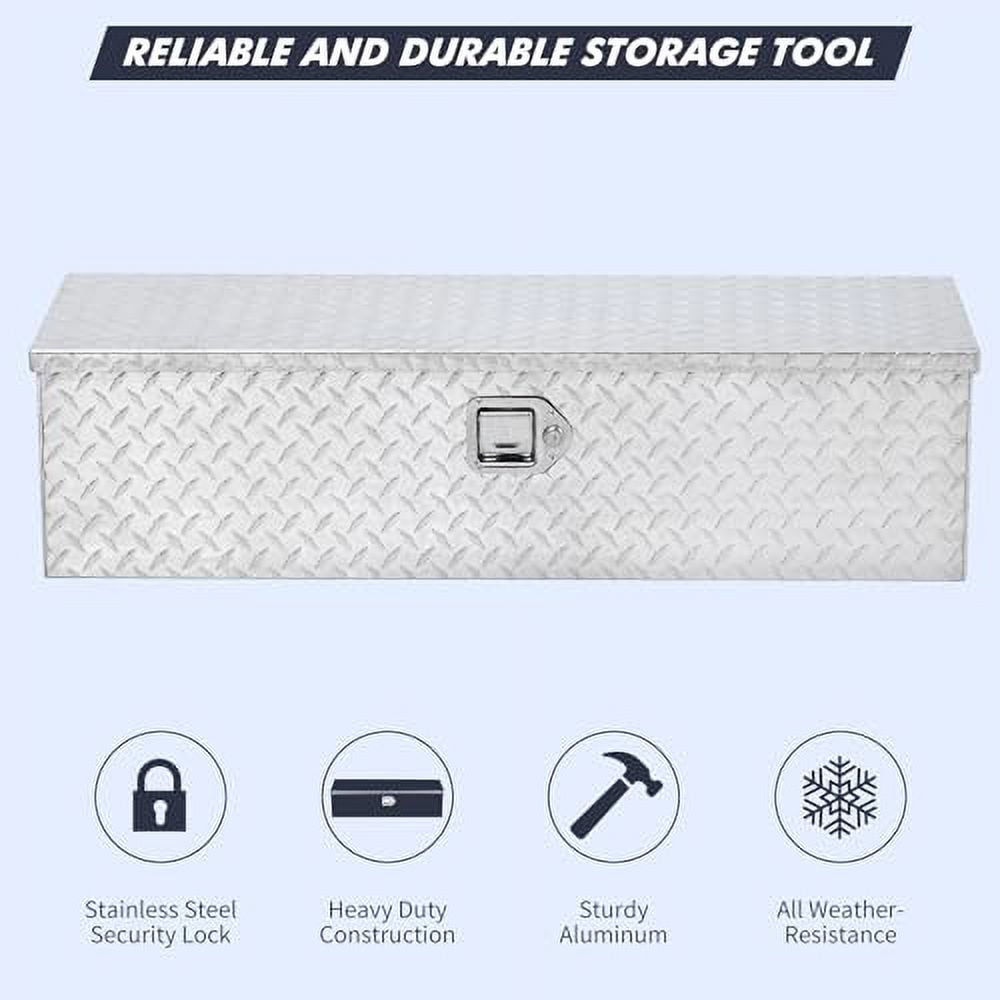 - STURDY ANDDURA BLE This truck toolbox is constructed with high-density aluminum and a non-slip surface while being highly resistant to oxidation, ensuring it maintains an attractive appearance and stable performance in harsh environments over time.