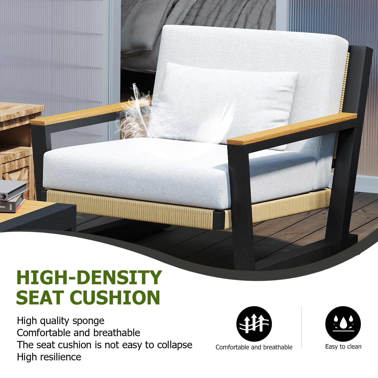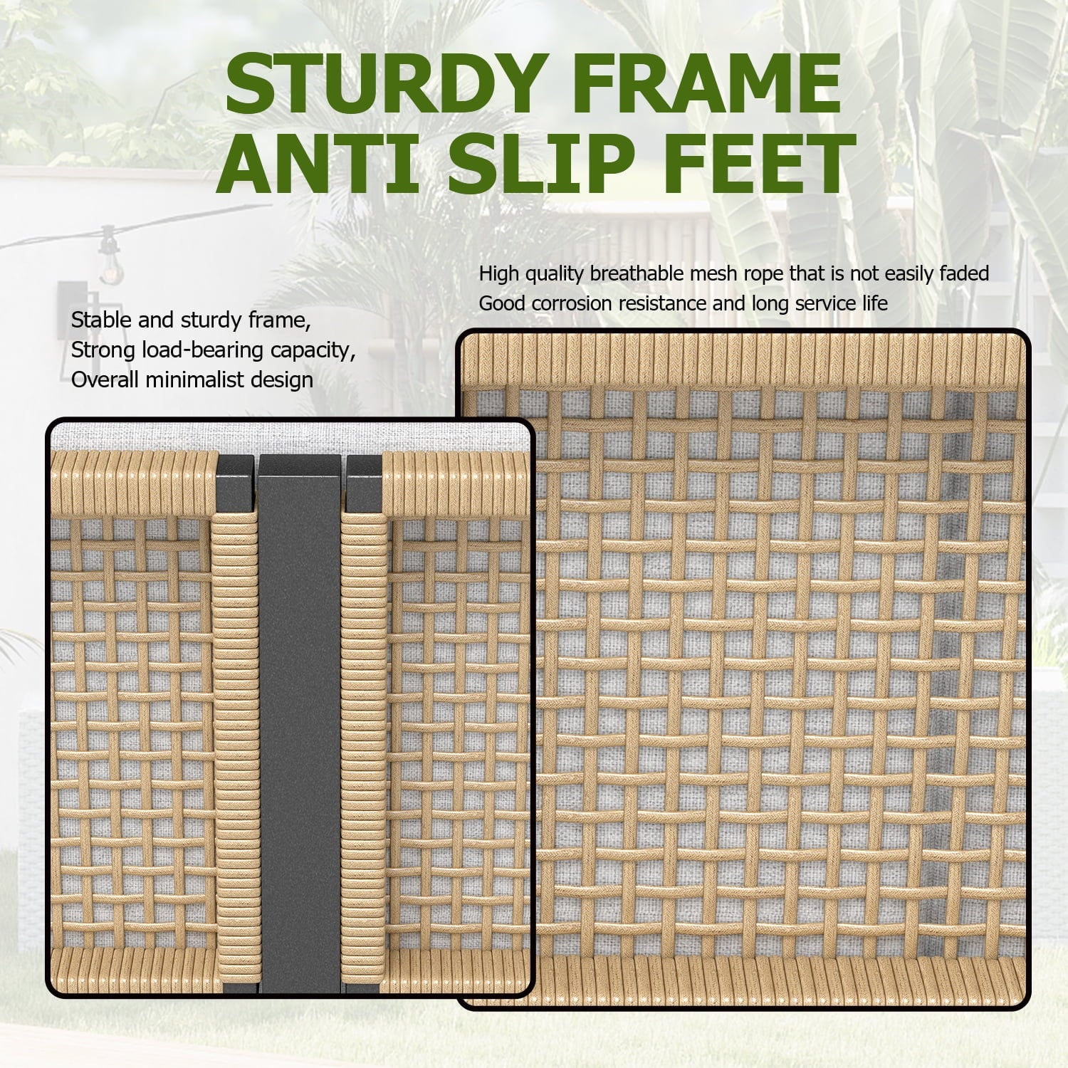 Weather-Resistant & Durable: Crafted with polypropylene fiber and high-density PE webbing, this Aluminum Patio Furniture Set resists UV rays, water, and tears. The sturdy woven design supports up to 500lbs, ensuring long-lasting performance in any outdoor environment.
