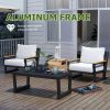Rust-Proof Aluminum Frame: The lightweight, powder-coated frame is UV and rust-resistant, making this Patio Conversation Sets durable and easy to move. Perfect for patios, gardens, or poolside use.