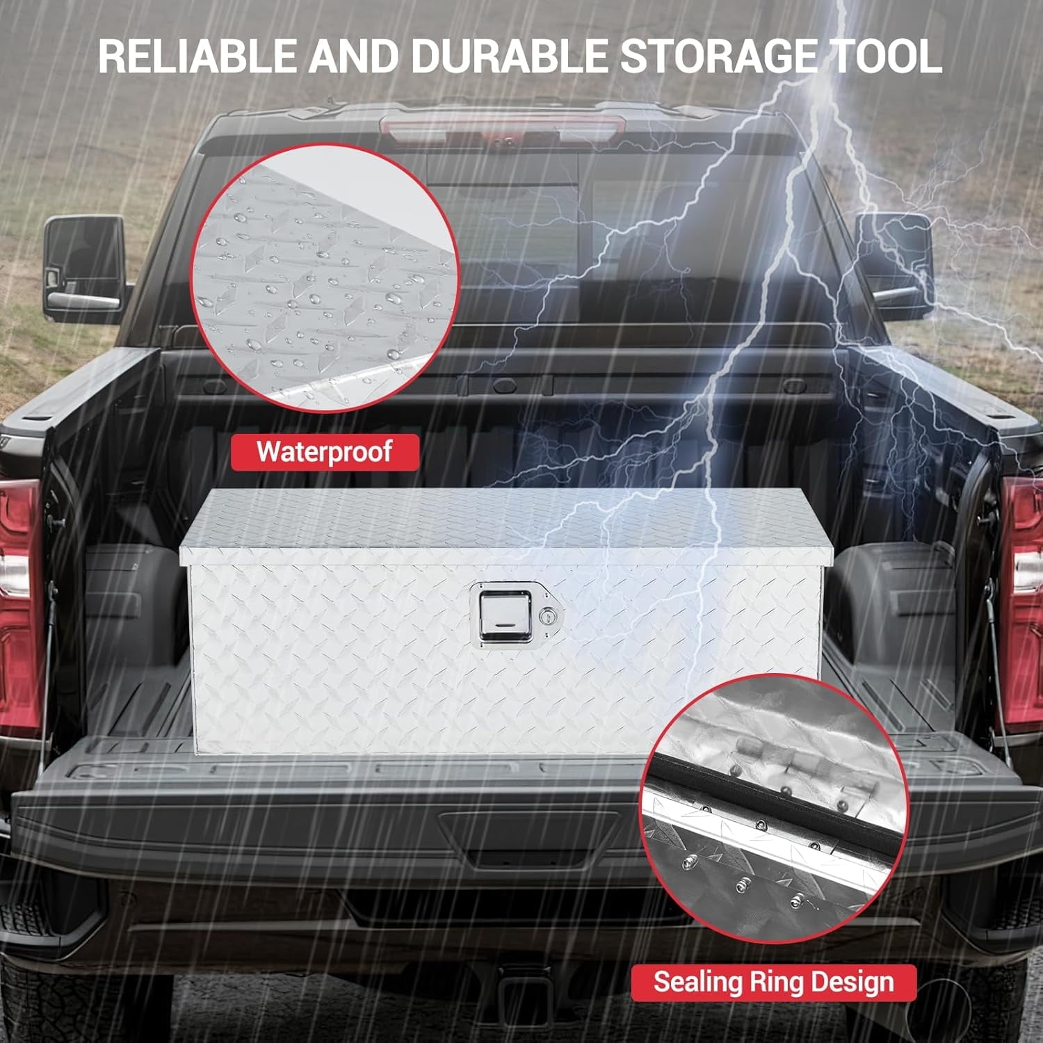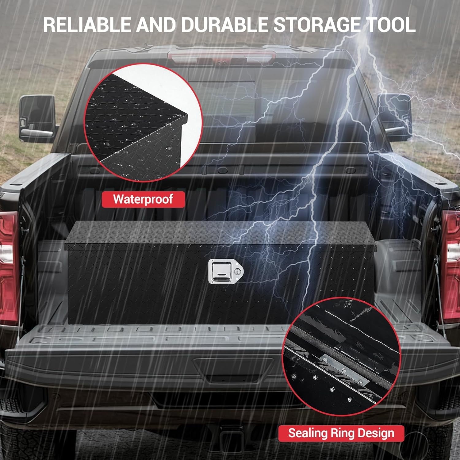 - Water and Rust Resistant: With sealing strips and professional powder coating, our truck bed tool box ensures effective water and rust resistance. Your tools stay dry and protected, ready for any work environment