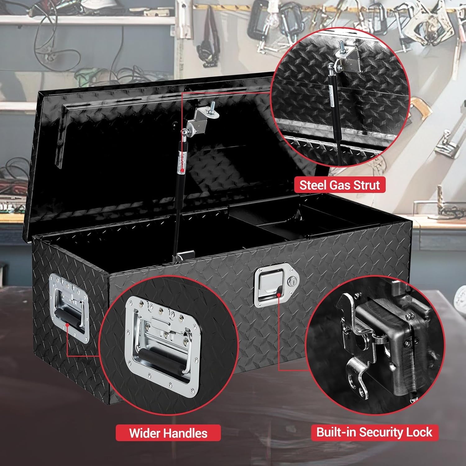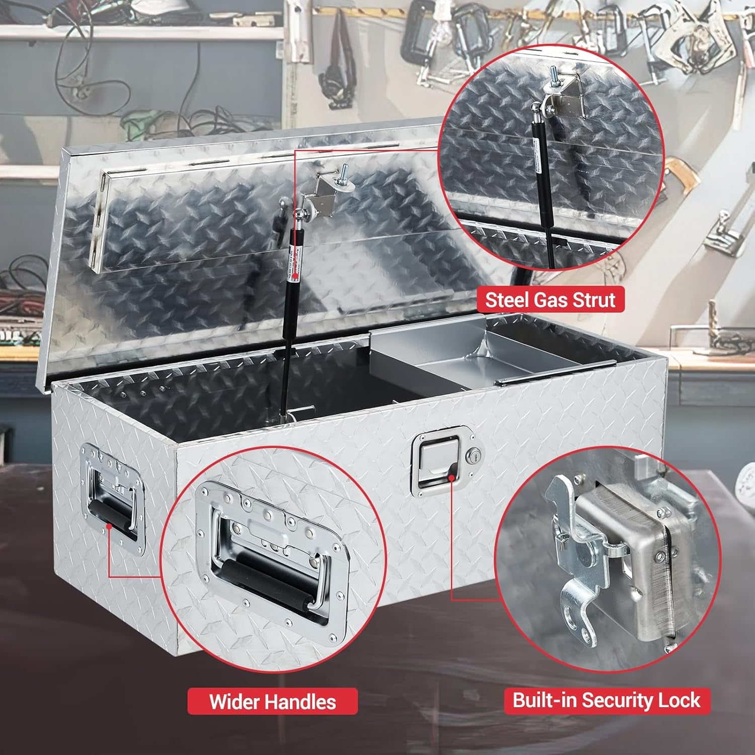 - Heavy-Duty Aluminum Build: Constructed from high-density aluminum, our aluminum truck tool box is tough and resistant to oxidation, providing durable performance for your toughest jobs. It’s the ideal metal tool box for any truck