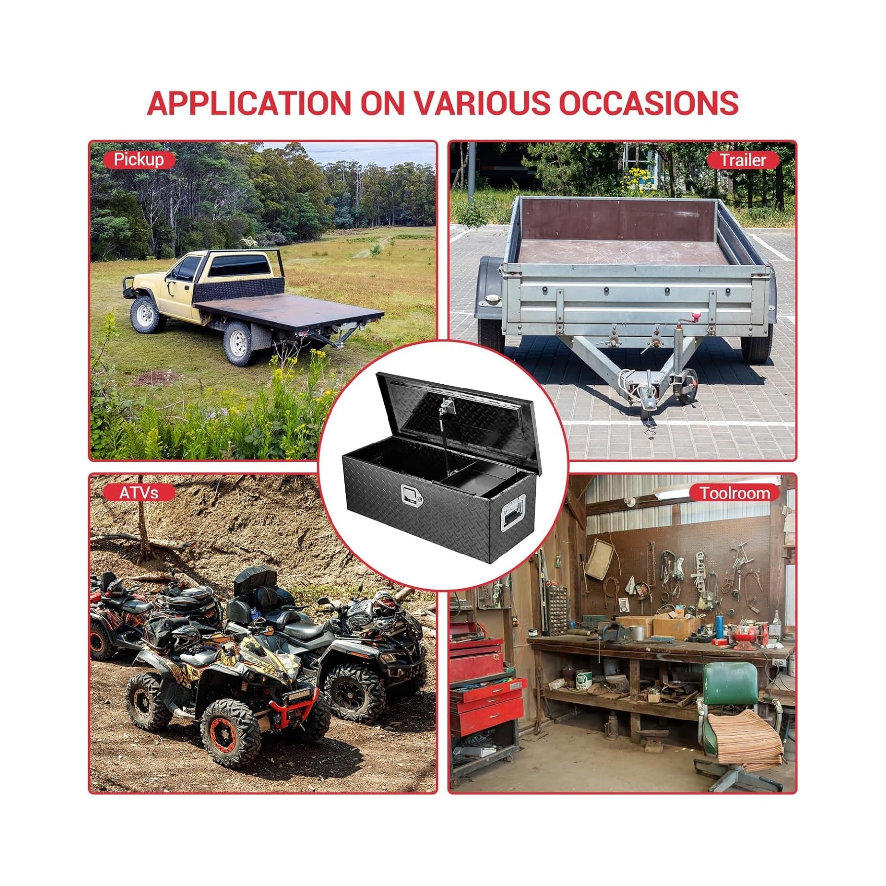- Versatile Use: This truck storage organizer is perfect for pickup trucks, trailers, RVs, and warehouses. Whether at the job site or on the go, our toolbox is a reliable job box for keeping your tools organized and secure