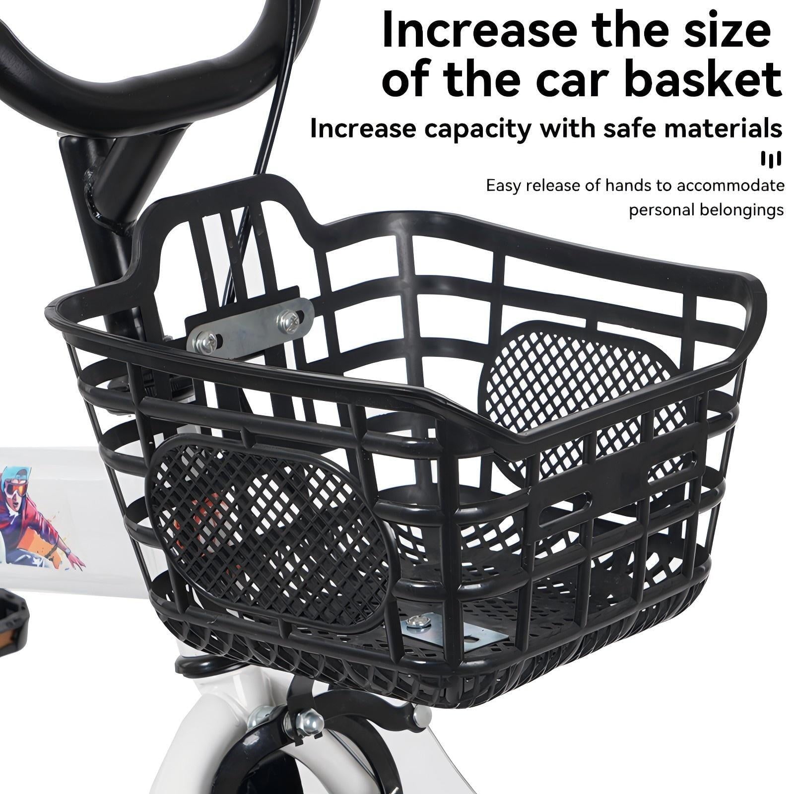 Ideal for kids aged 4–7, the ALVANTOR 16″ Bike offers a strong steel frame and smart dual-brake system, ensuring both fun and safe rides. It features removable training wheels and an adjustable seat to grow with your child. A stylish front basket lets them carry small treasures. Comes mostly assembled with tools for easy setup—perfect for immediate outdoor fun.