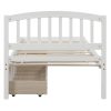 Maximize your space in style with the Alvantor Twin Size Espresso Solid Wood Platform Bed with Storage Drawers—a refined, modern solution for compact bedrooms, kids’ rooms, and guest spaces. Crafted from durable solid wood and finished in a clean Espresso tone, this twin bed with headboard and drawers brings timeless appeal and functional design together. This twin platform bed includes two spacious storage drawers on smooth-glide casters, perfect for keeping bedding, clothes, or seasonal items neatly tucked away. An additional open space opposite the drawers is ideal for placing shoes, storage bins, or travel bags. With ten reinforced slats, this bed provides sturdy, even mattress support—no box spring required. Built to last, the Alvantor bed features high-quality hardware, solid pinewood legs, and anti-slip baffles to keep drawers aligned. Assembly is simple with clear instructions and labeled parts, making it an ideal upgrade for anyone seeking durability, convenience, and understated elegance.