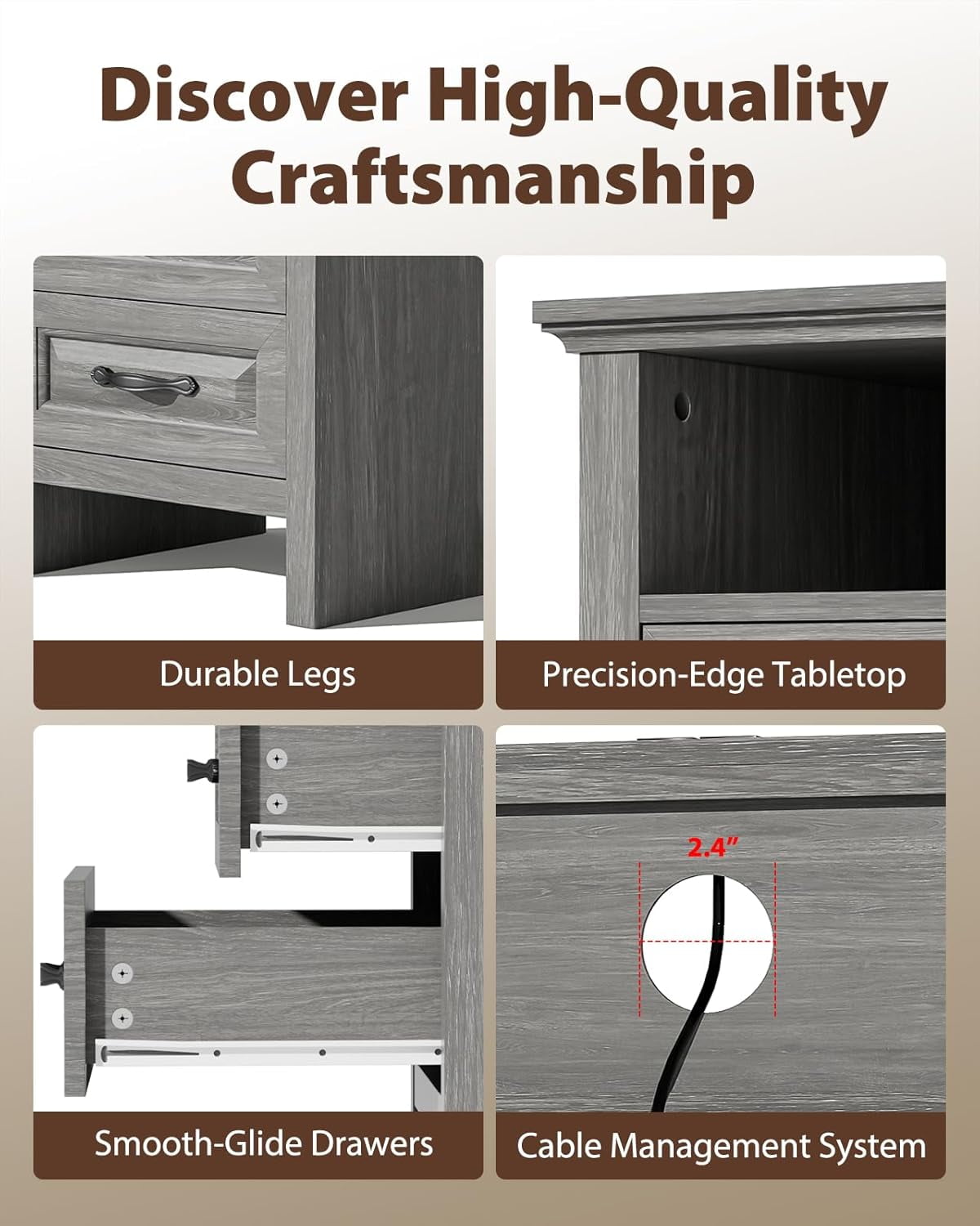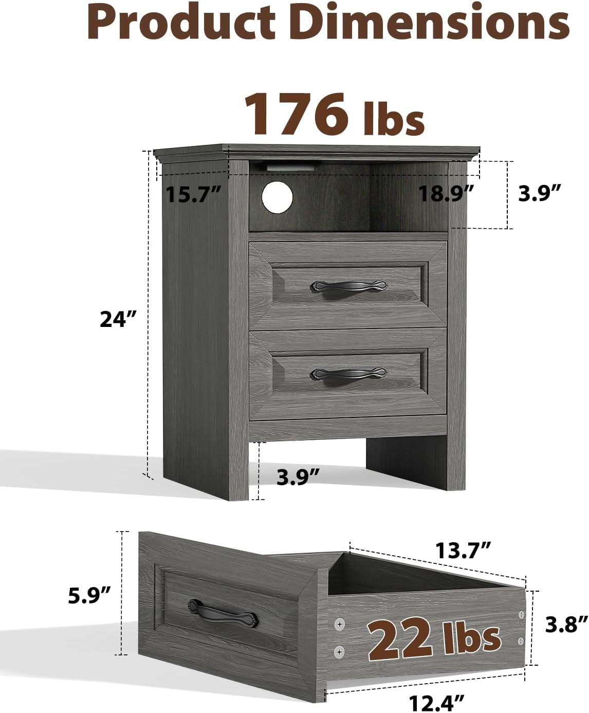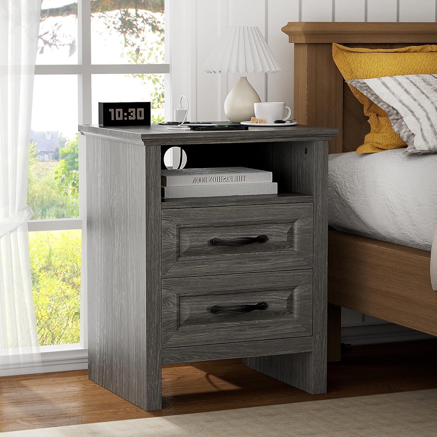 Charging Station Built In & Out of Sight: This nightstand with charging station features two AC outlets, one USB port, and one Type-C port, allowing you to power multiple devices easily. The built-in power panel is neatly hidden to keep cords organized and out of view—perfect for maintaining a clean, modern bedside table or living room end table setup.