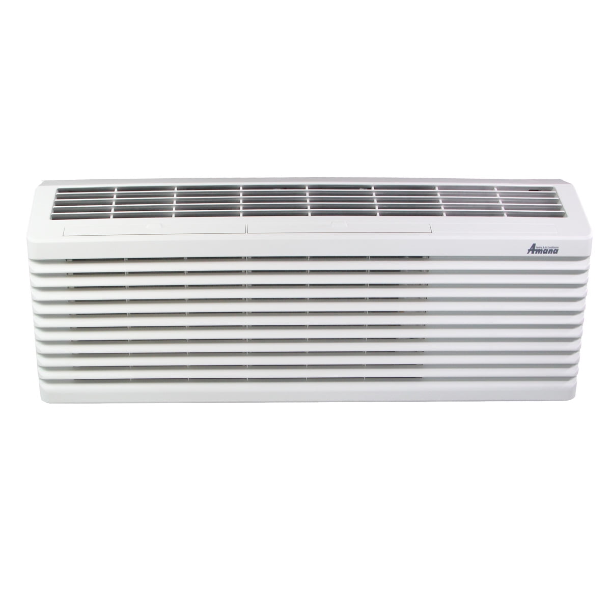 Designed for hotel and motel operations, residential additions, sunrooms, and small living spaces, this Amana J-Series Heat Pump PTAC offers 9,200 – 9,000 BTU/h of cooling power and a 3.5 kw(12,000 – 9,900 BTU/h) electric heater with a 20 amp power cord. With a 12.1 – 12.2 EER rating, this unit uses 230v / 208-volt electricity and is great for a room of about 300-360 square feet in residential and commercial applications.