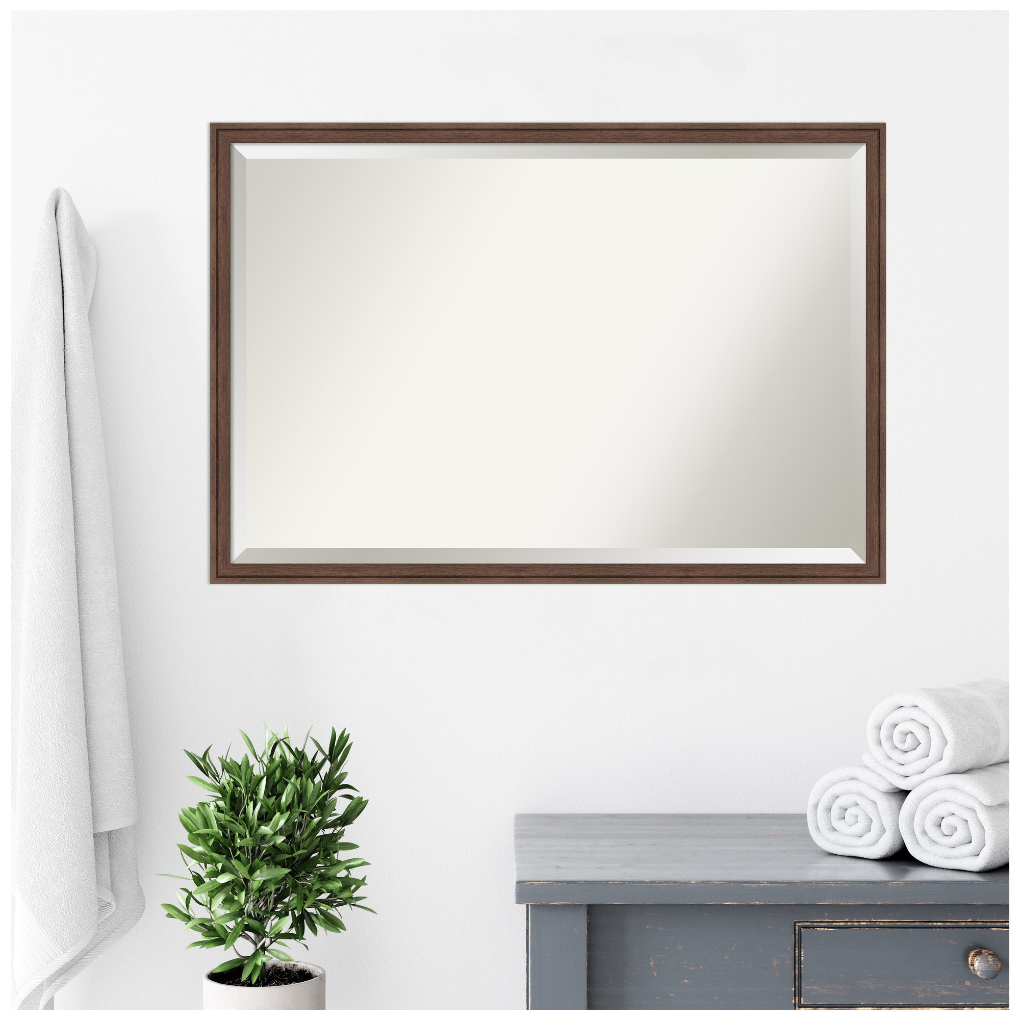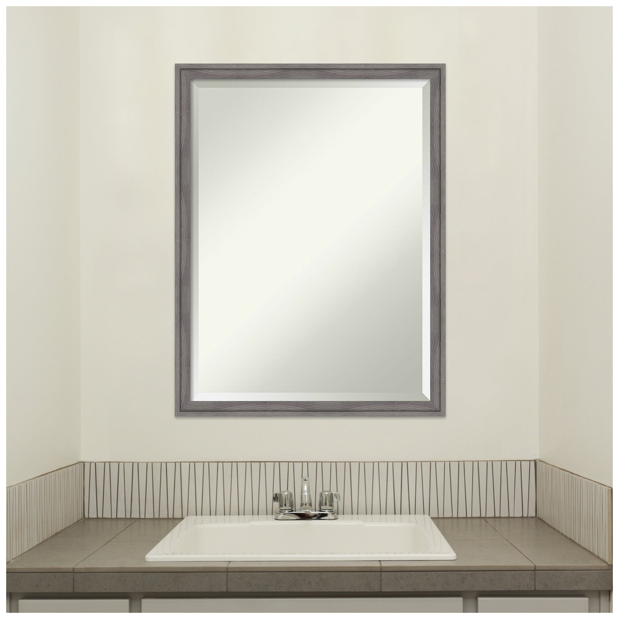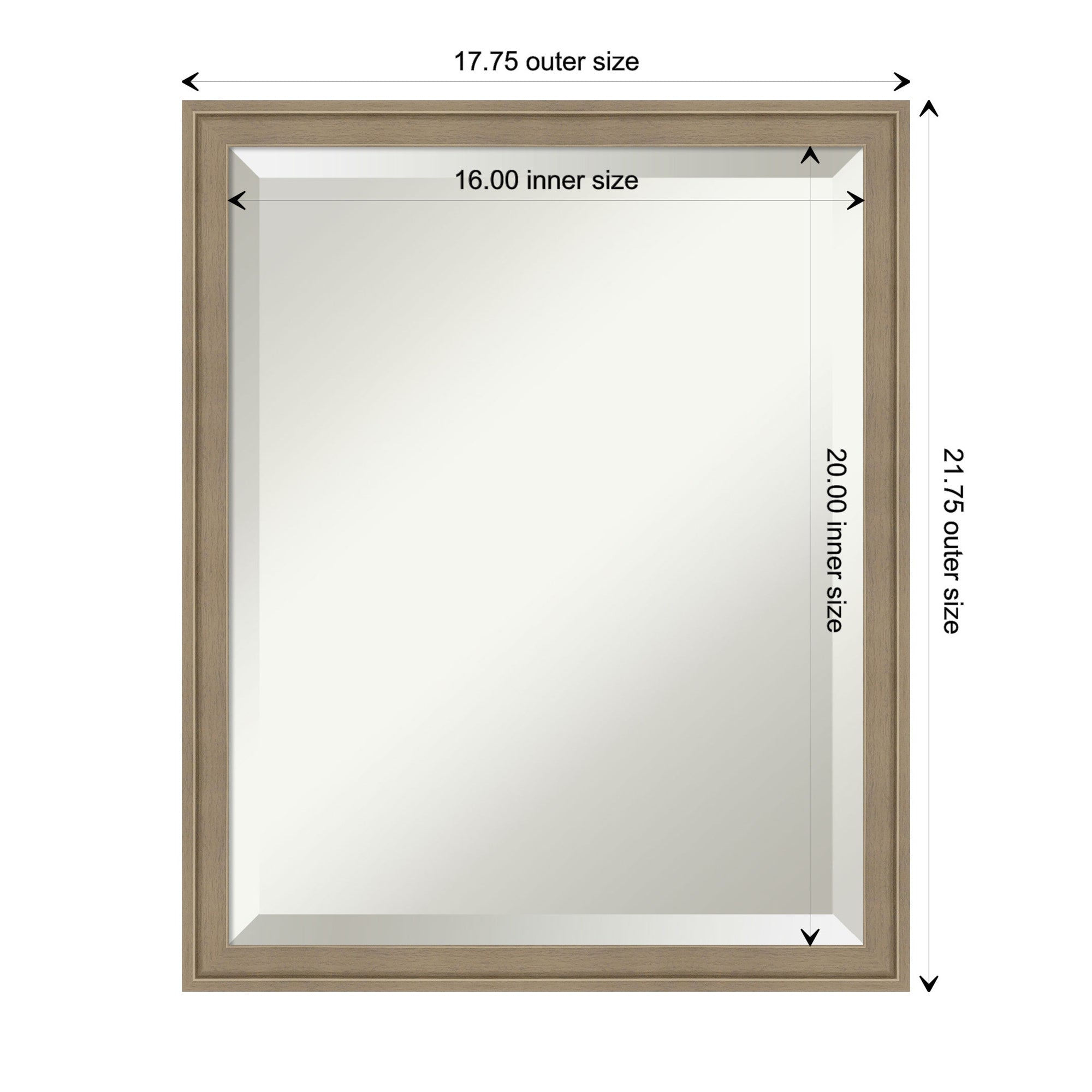 - MIRROR DETAILS: This mirror features premium glass for a clear, undistorted image and is finished with a beveled edge to give the glass a decorative touch. The overall size of this bathroom mirror measures 41.75 x 31.75 inches, including the frame. Its reflective area measures 40 x 30 inches.