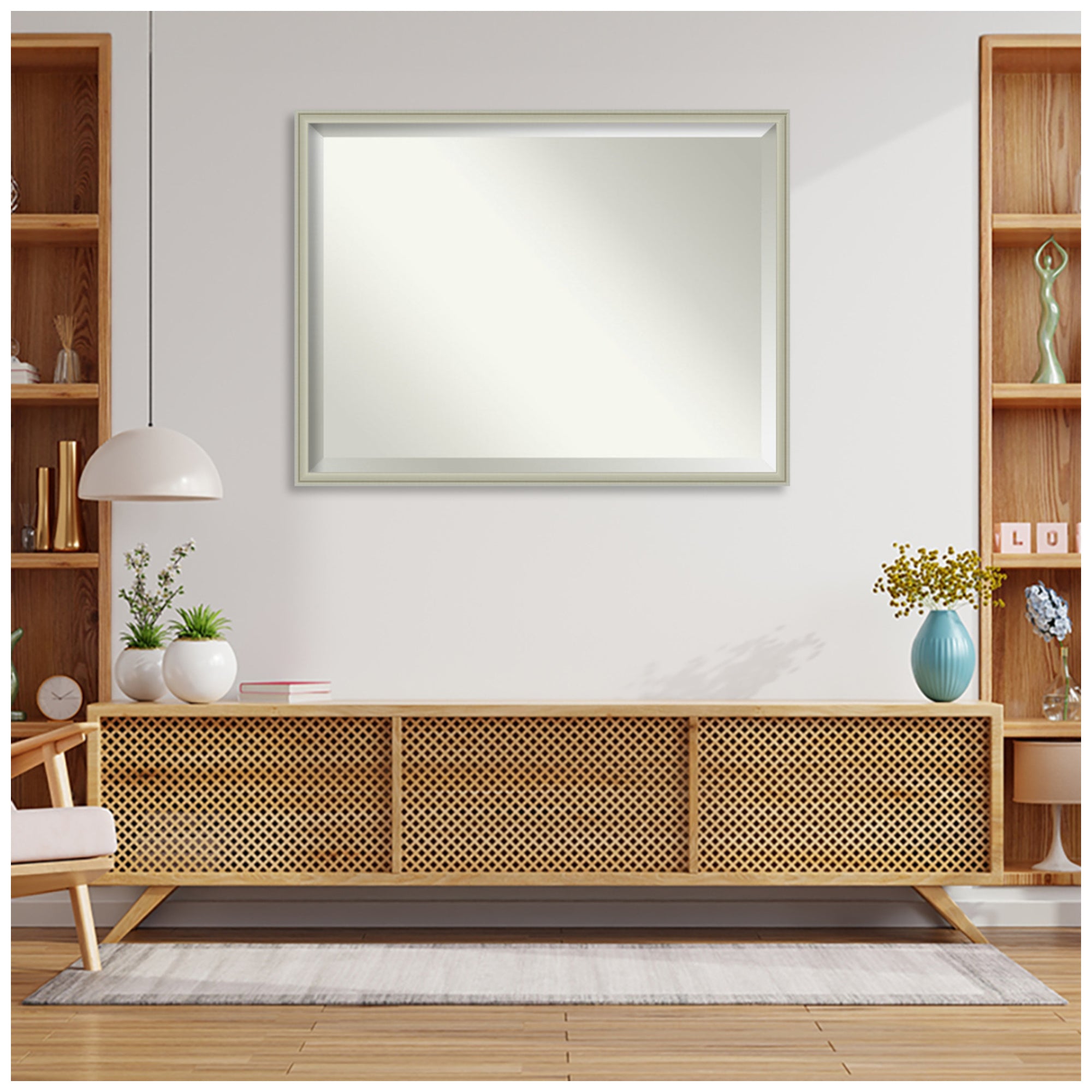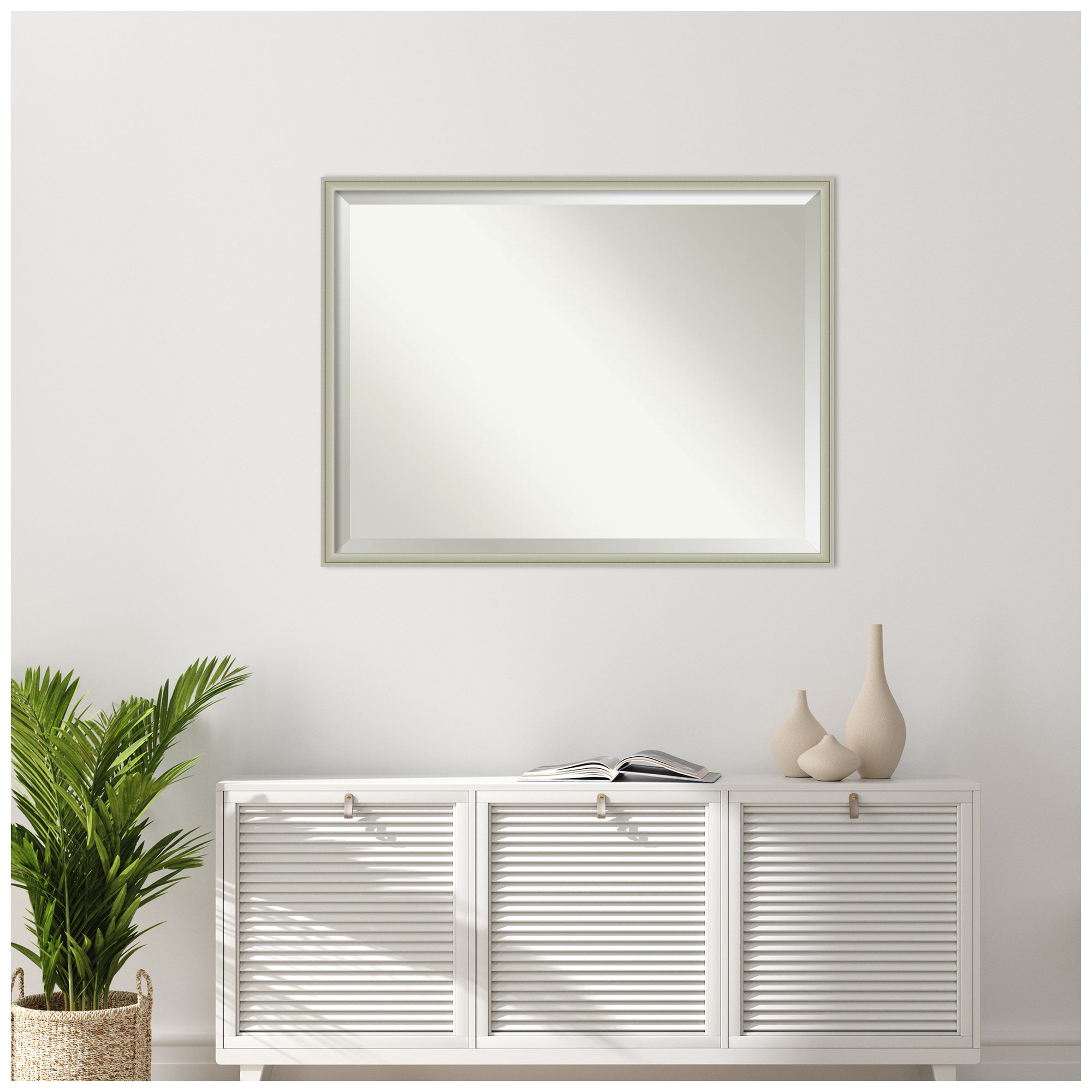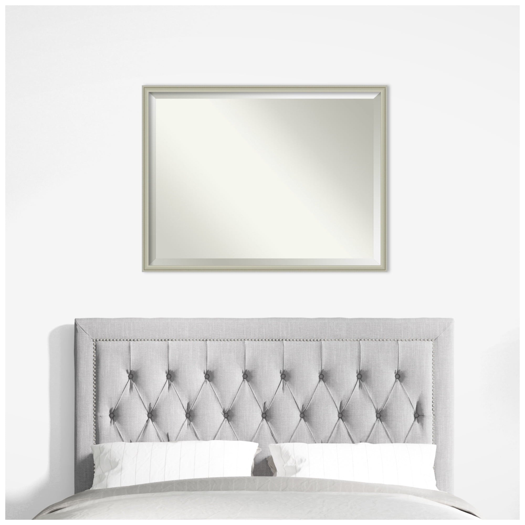 Give your home or office the finishing touch with this 100% real wood Beveled Wall Mirror framed with the Florence Silver frame. Individually made using traditional custom framing techniques, it has the quality you would expect from your local frame shop. It holds its value with premium finishing that can be appreciated up close.