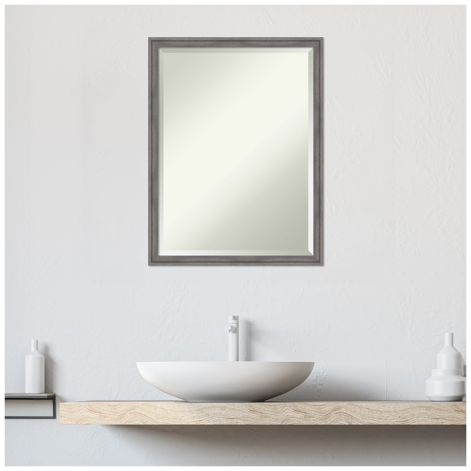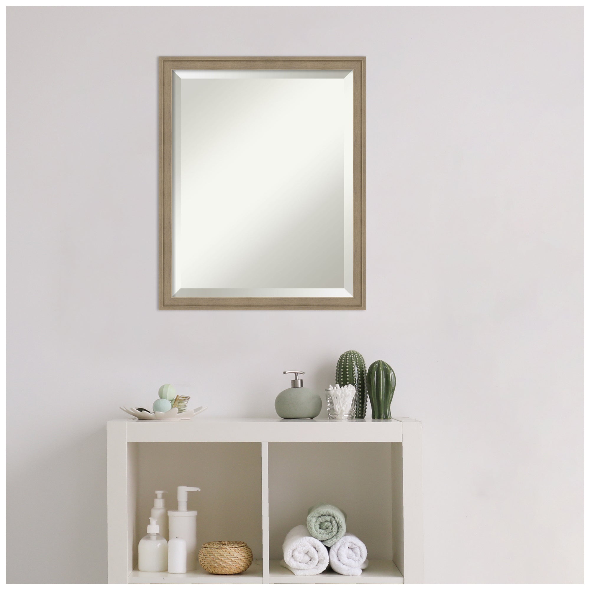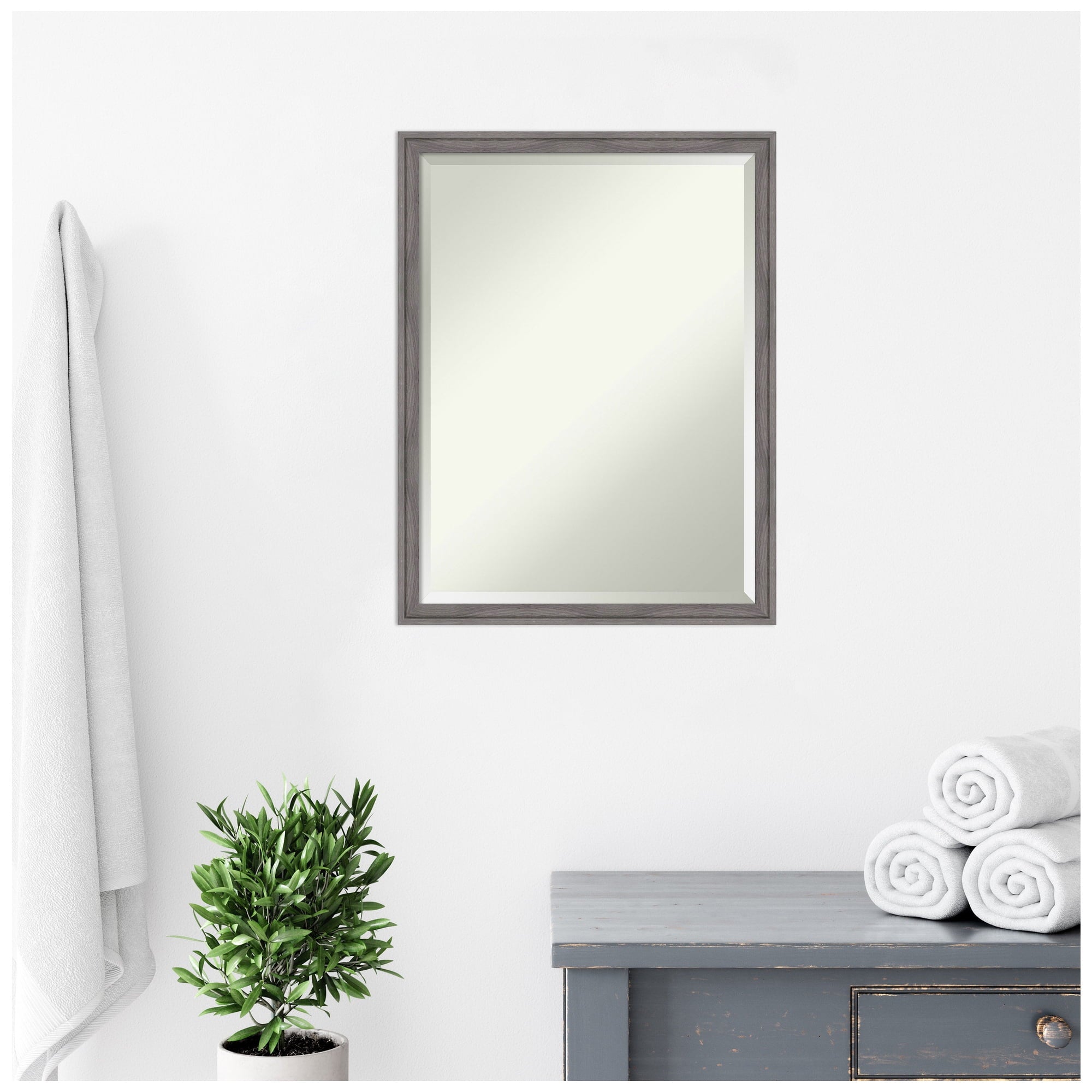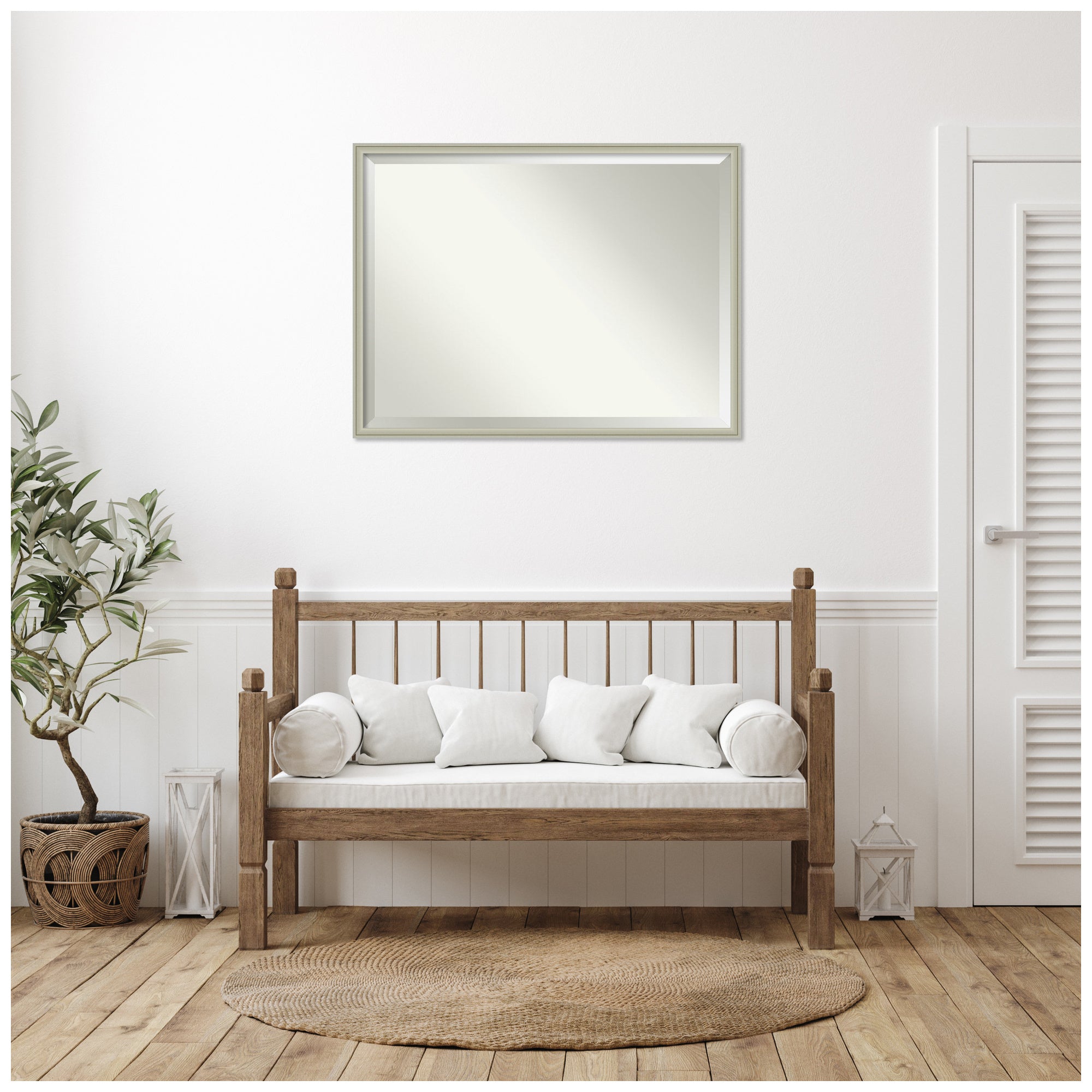 Give your home or office the finishing touch with this 100% real wood Beveled Wall Mirror framed with the Florence Silver frame. Individually made using traditional custom framing techniques, it has the quality you would expect from your local frame shop. It holds its value with premium finishing that can be appreciated up close.