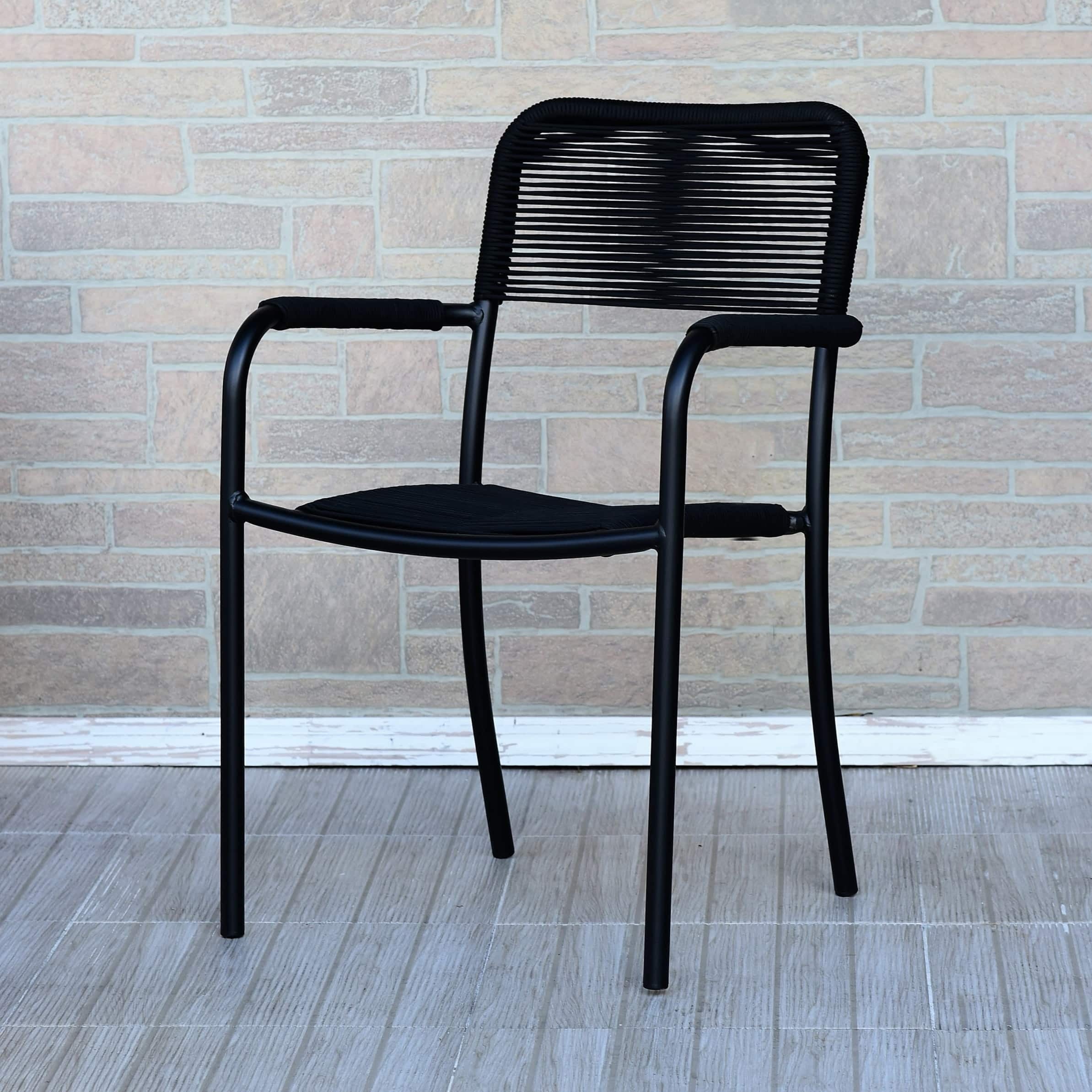 Turn your patio into a second living or dining room with this four-piece set of outdoor chairs. Available in black, these aluminum chairs are sealed with Duracoat to protect them from the elements.
