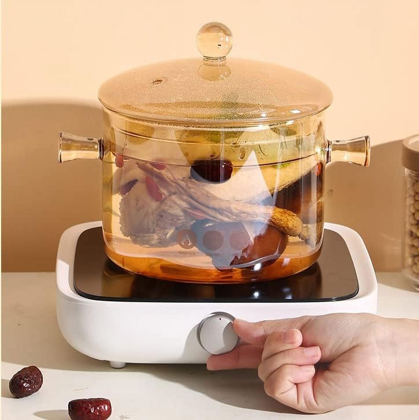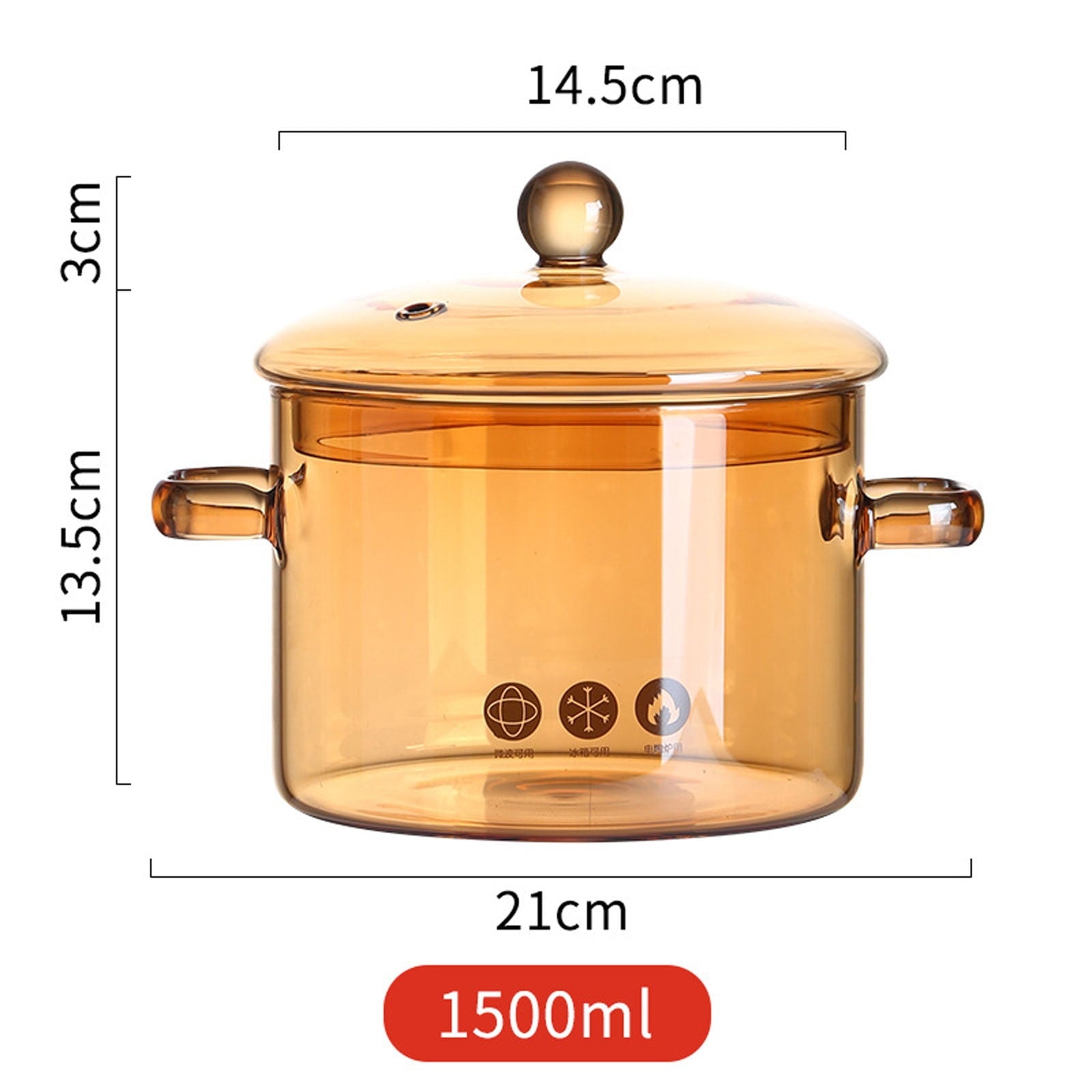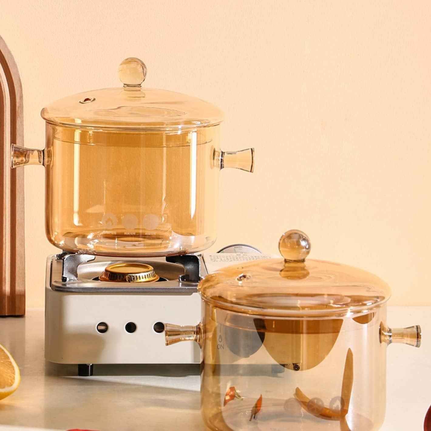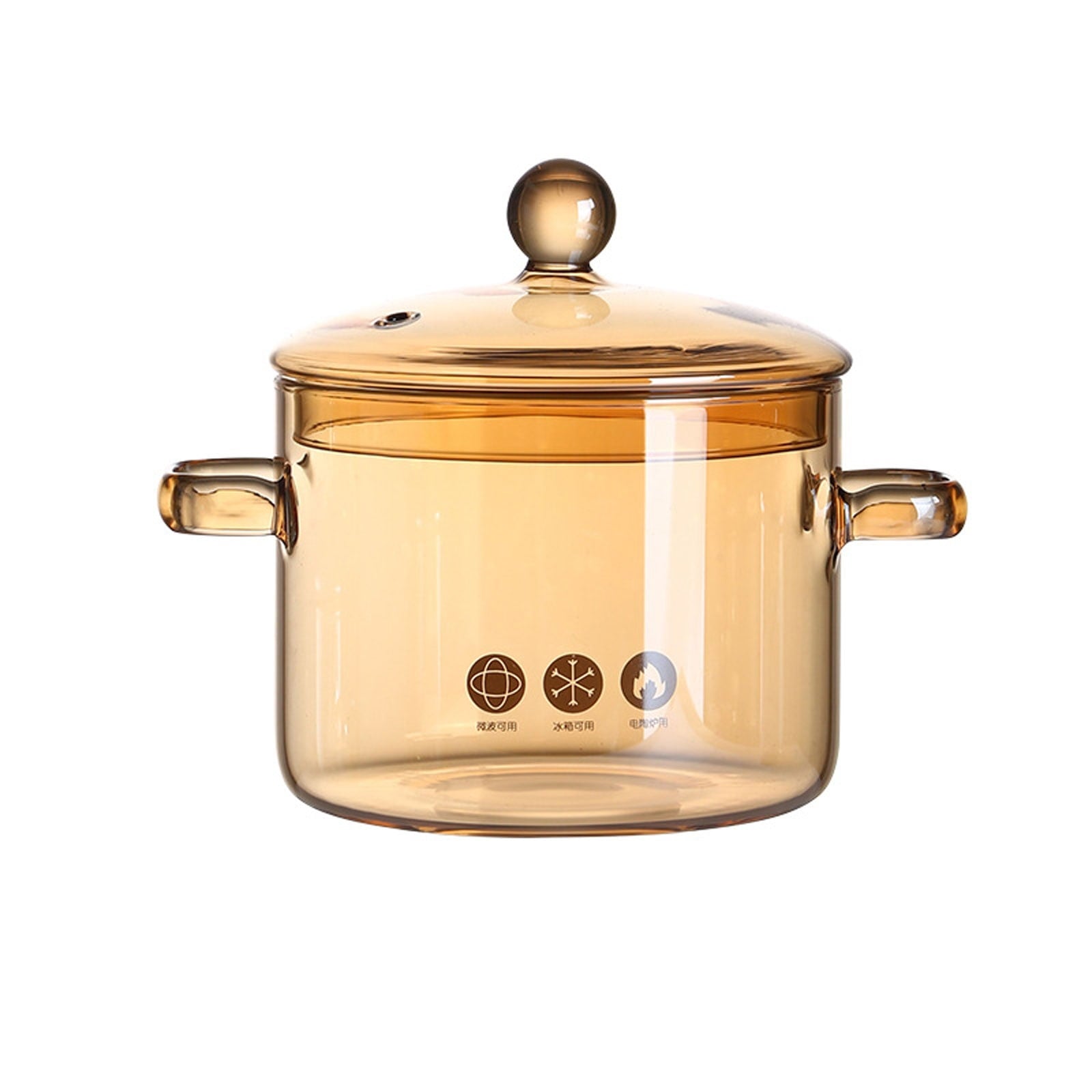 Amber Glass Cooking Pot Modern Glass Pot with Lid and Grip Stockpot Saucepans Glass Pot for Soup Vegetables Fruit Salad Instant Noodle [Energy Class A]