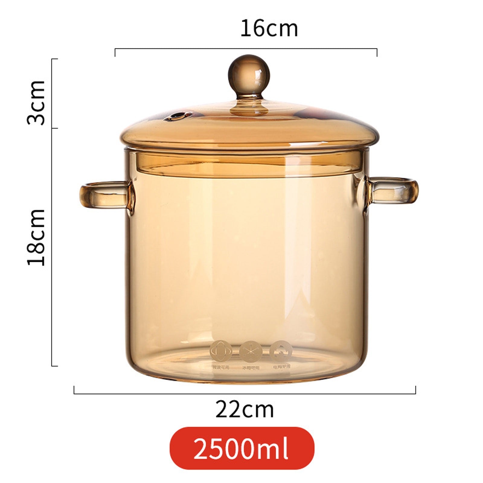 Home Soup & Stockpots Amber Glass Cooking Pot Modern Glass Pot with Lid and Grip Stockpot Saucepans Glass Pot for Soup Vegetables Fruit Salad Instant Noodle [Energy Class A]