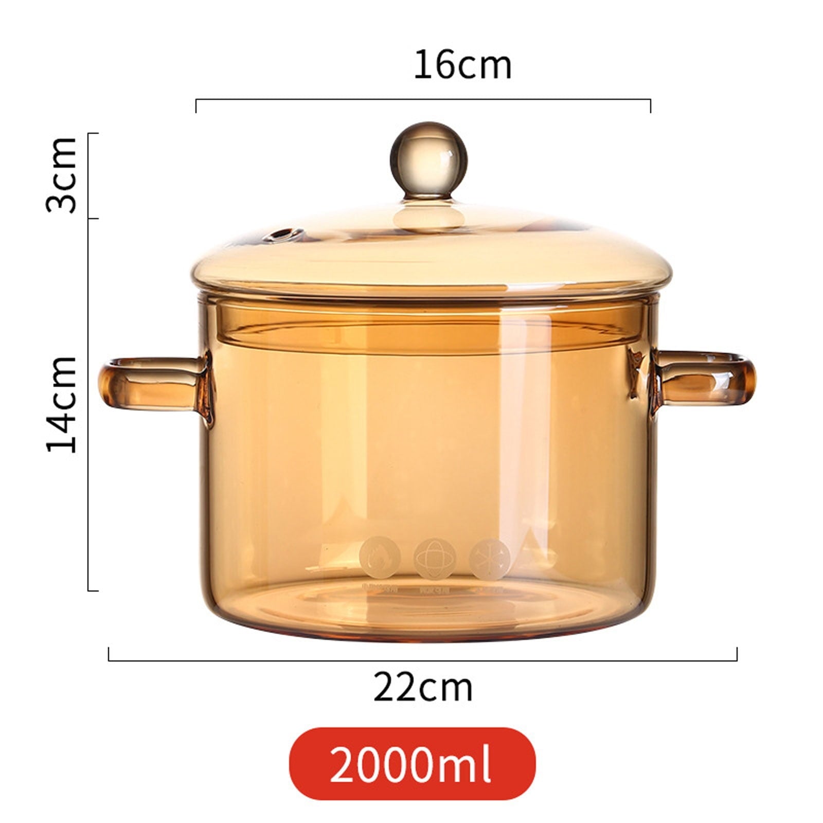 Material: Made of selected high-quality borosilicate glass, with strong heat resistance, can be cooked on open fire, durable, safe and healthier.