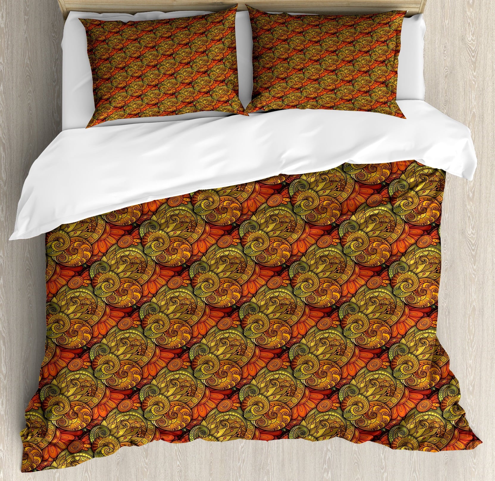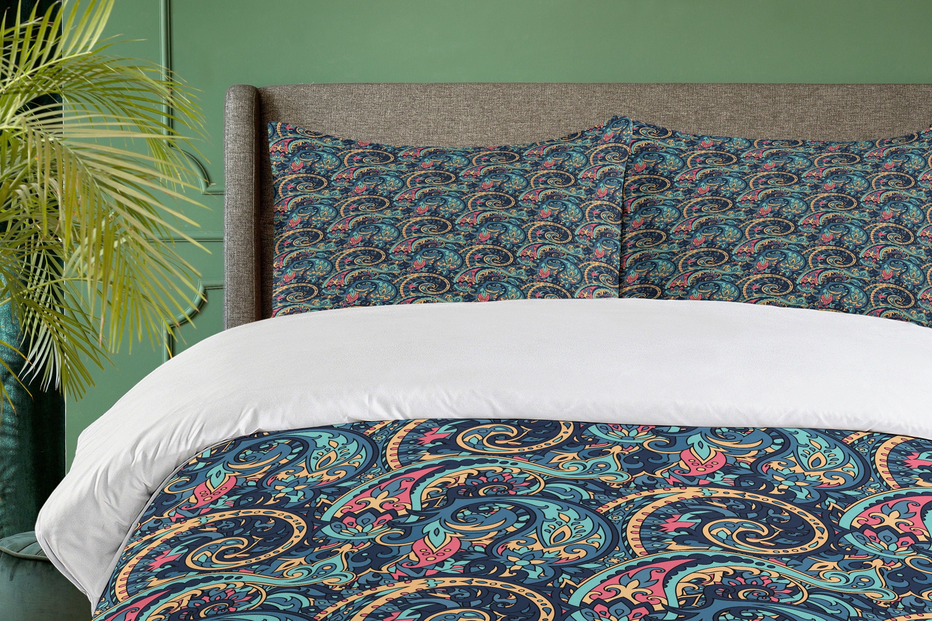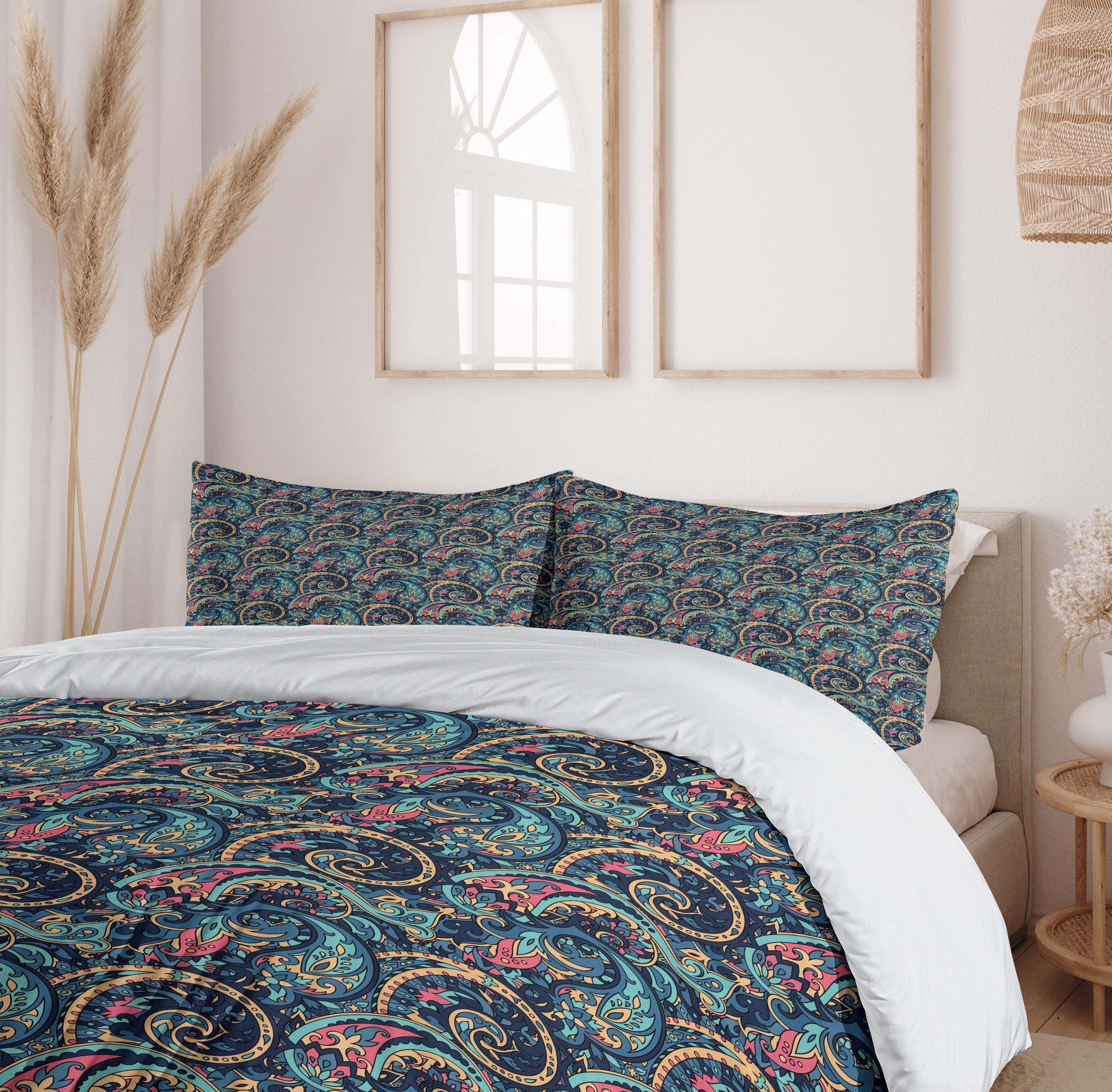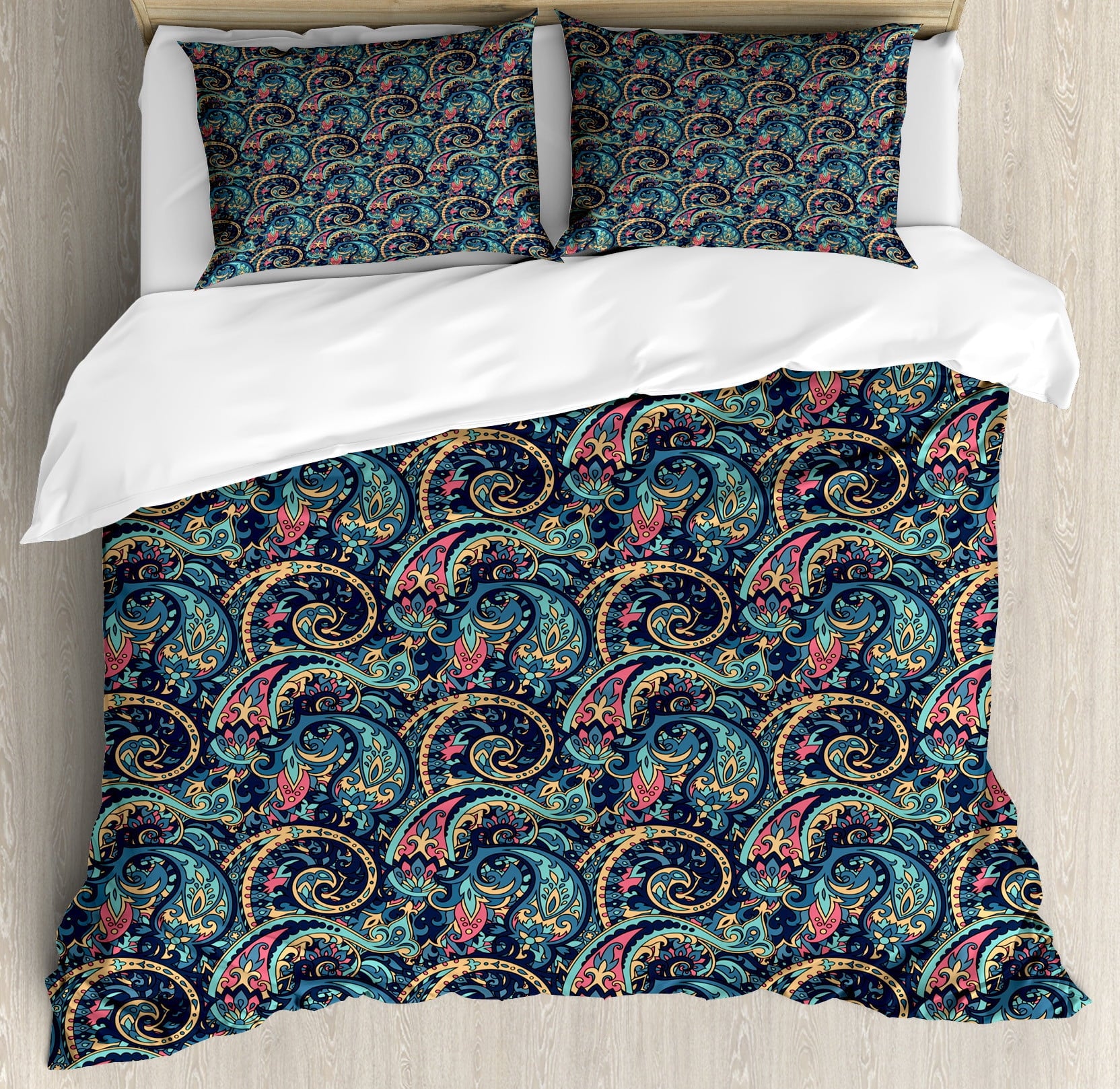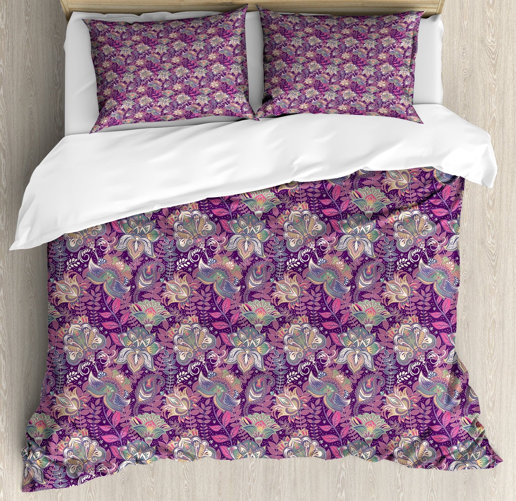 Home Bedding Sets Ambesonne Ethnic Duvet Cover Set, Floral Petal Form Nature, Calking, Lilac and Mint