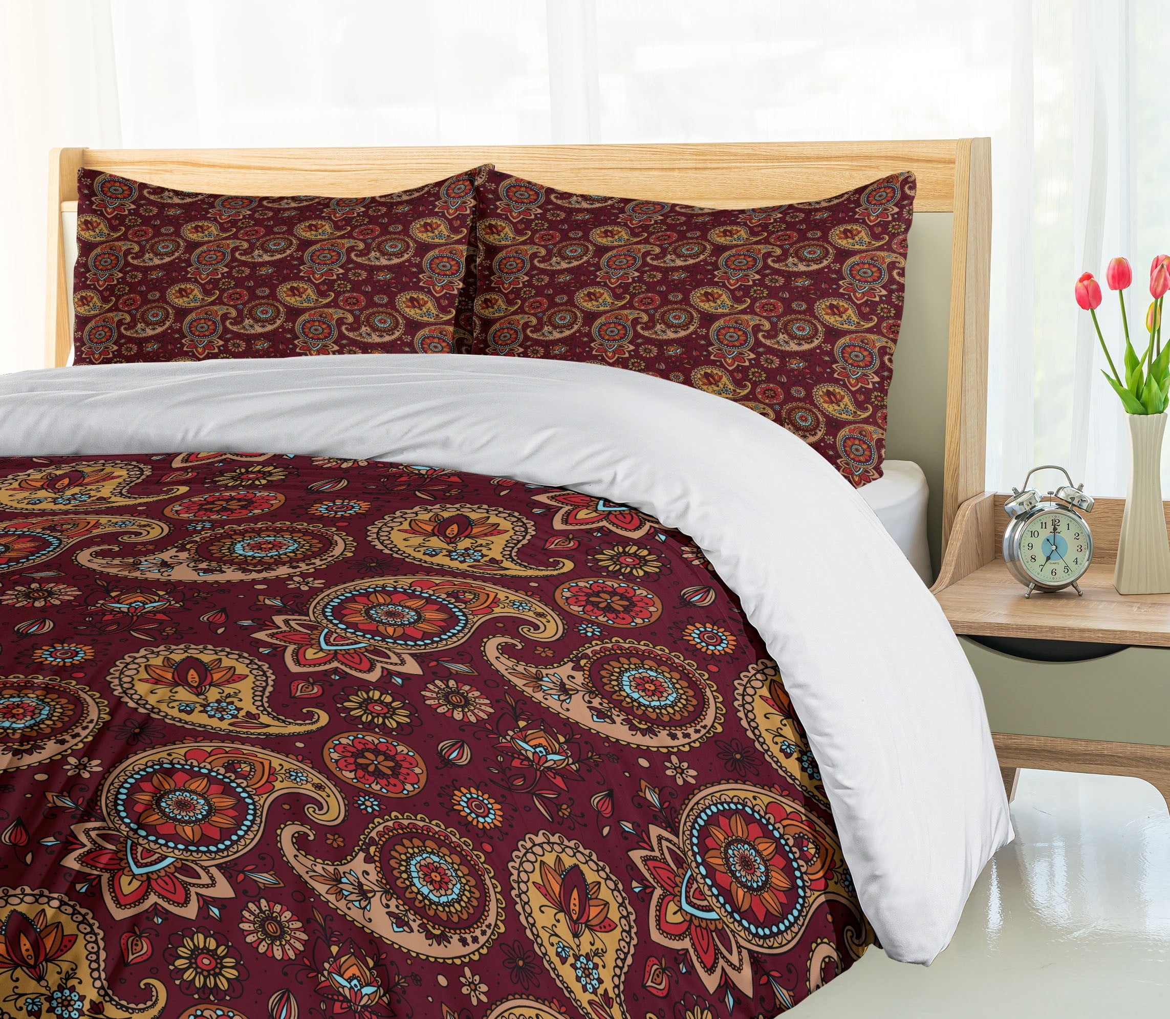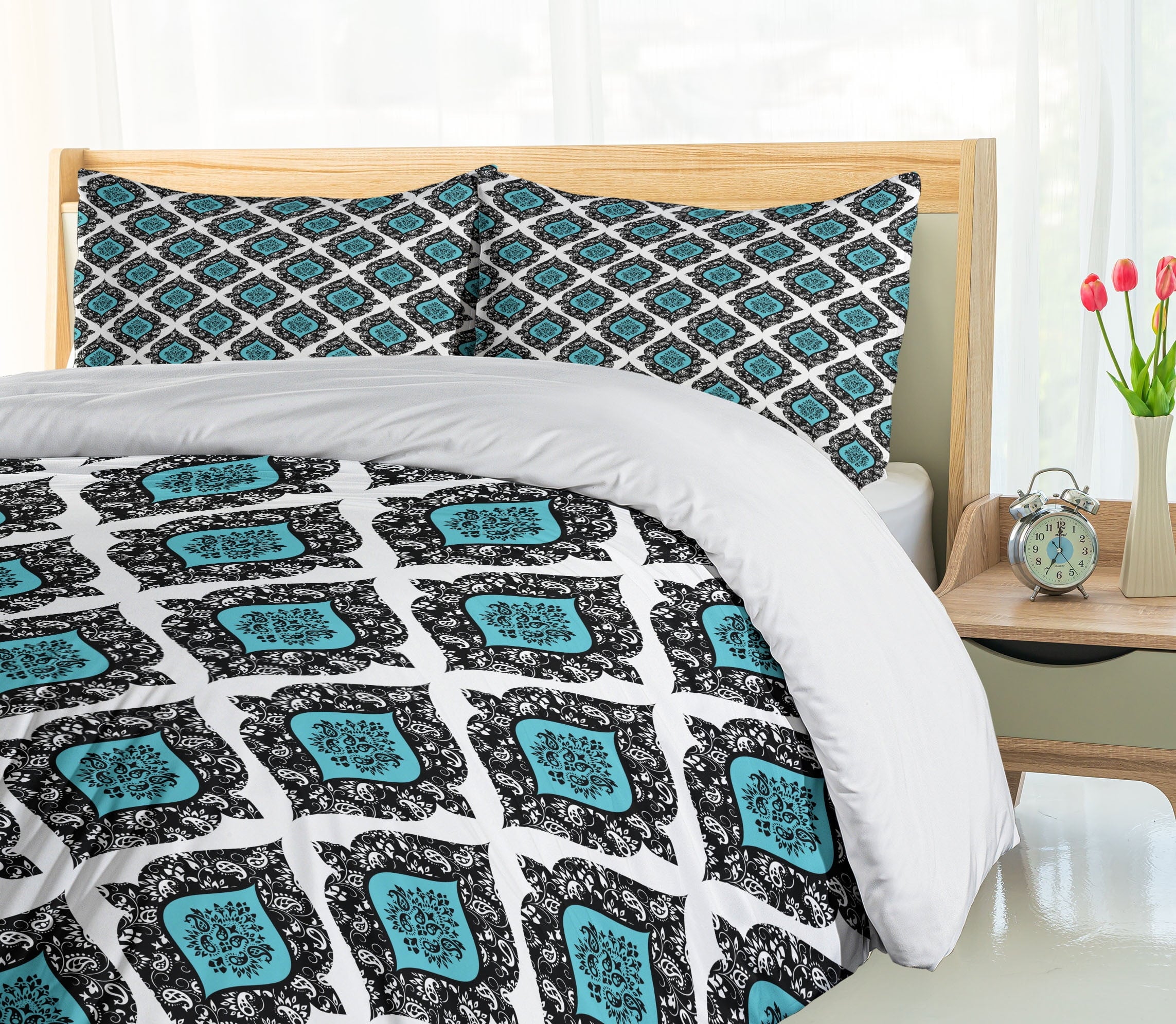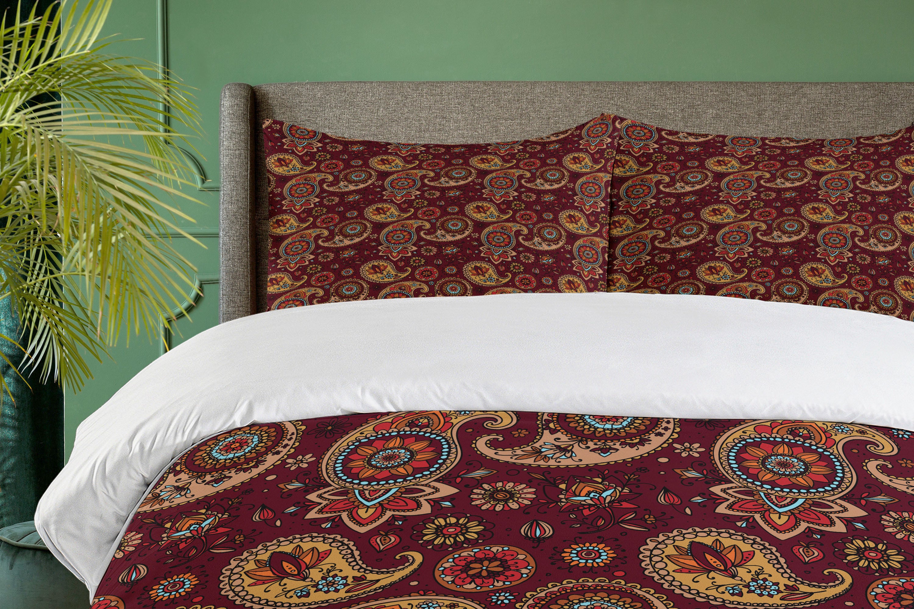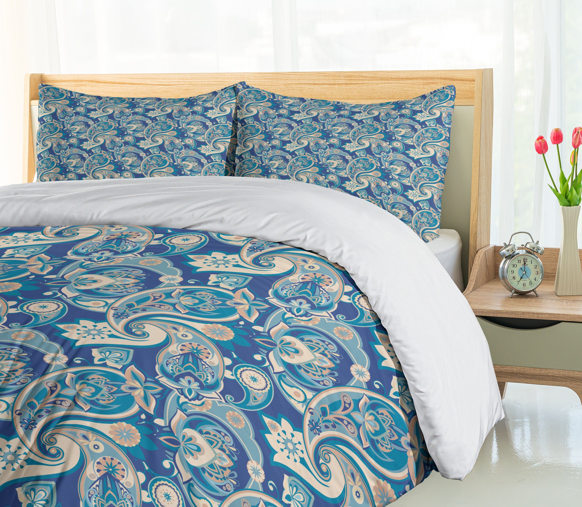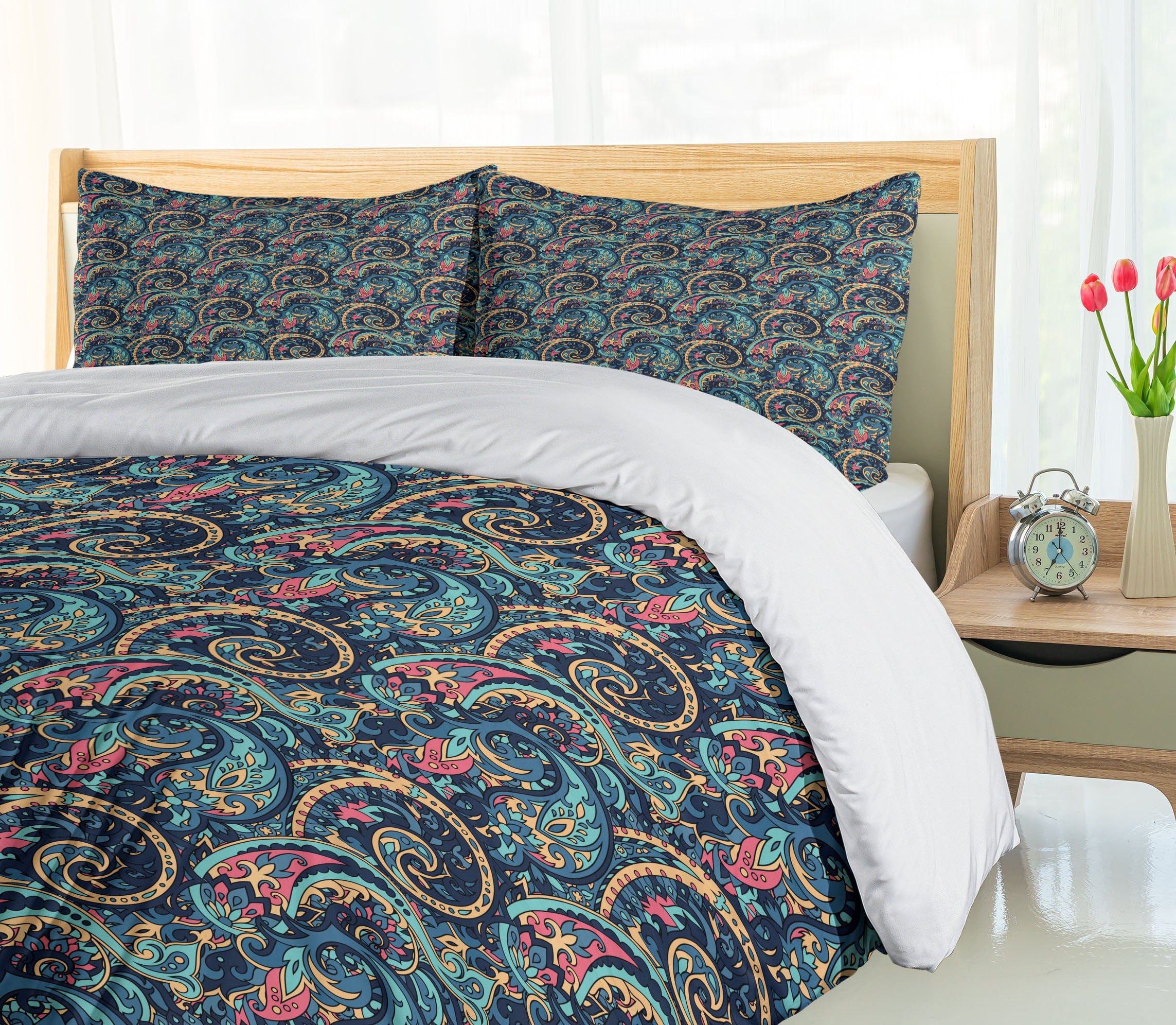 Home Bedding Sets Ambesonne Ethnic Duvet Cover Set, Floral Petal Form Nature, Calking, Lilac and Mint