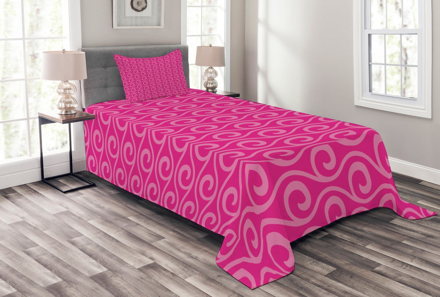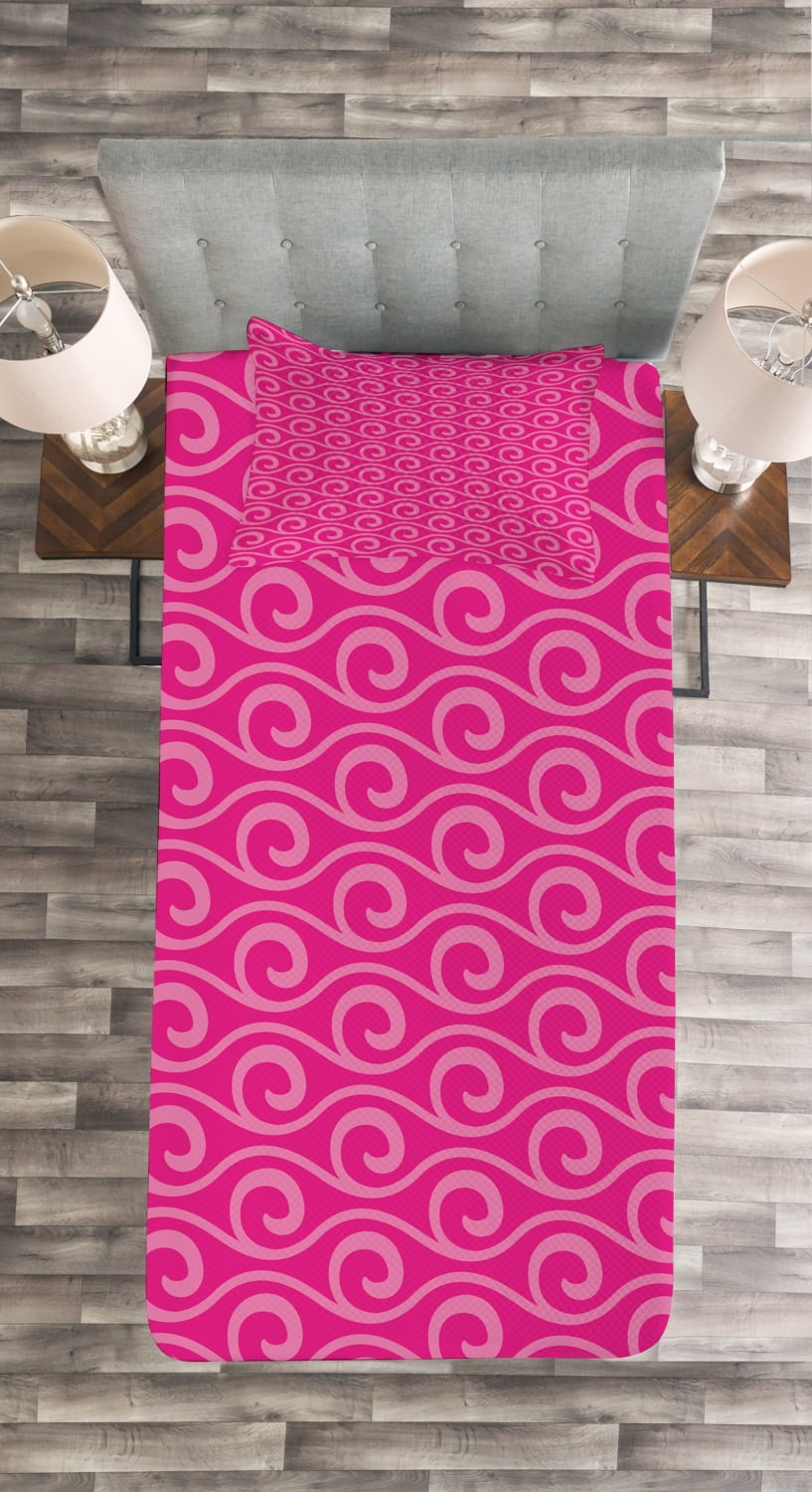 Home Bedding Sets Ambesonne Hot Pink Quilted Bedspread Set 3 Pcs, Fantasy Waves Curves, Queen Size, Pink Pale Pink