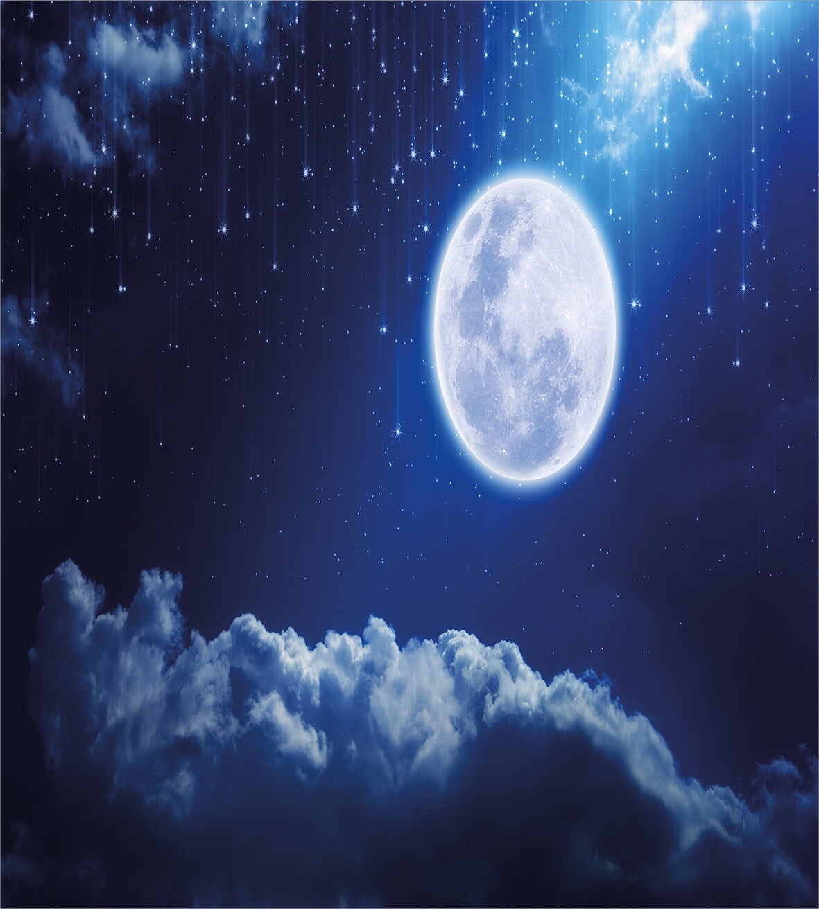 Ambesonne Moon Duvet Cover Set, Full Moon Falling Stars, Calking, Indigo Blue White