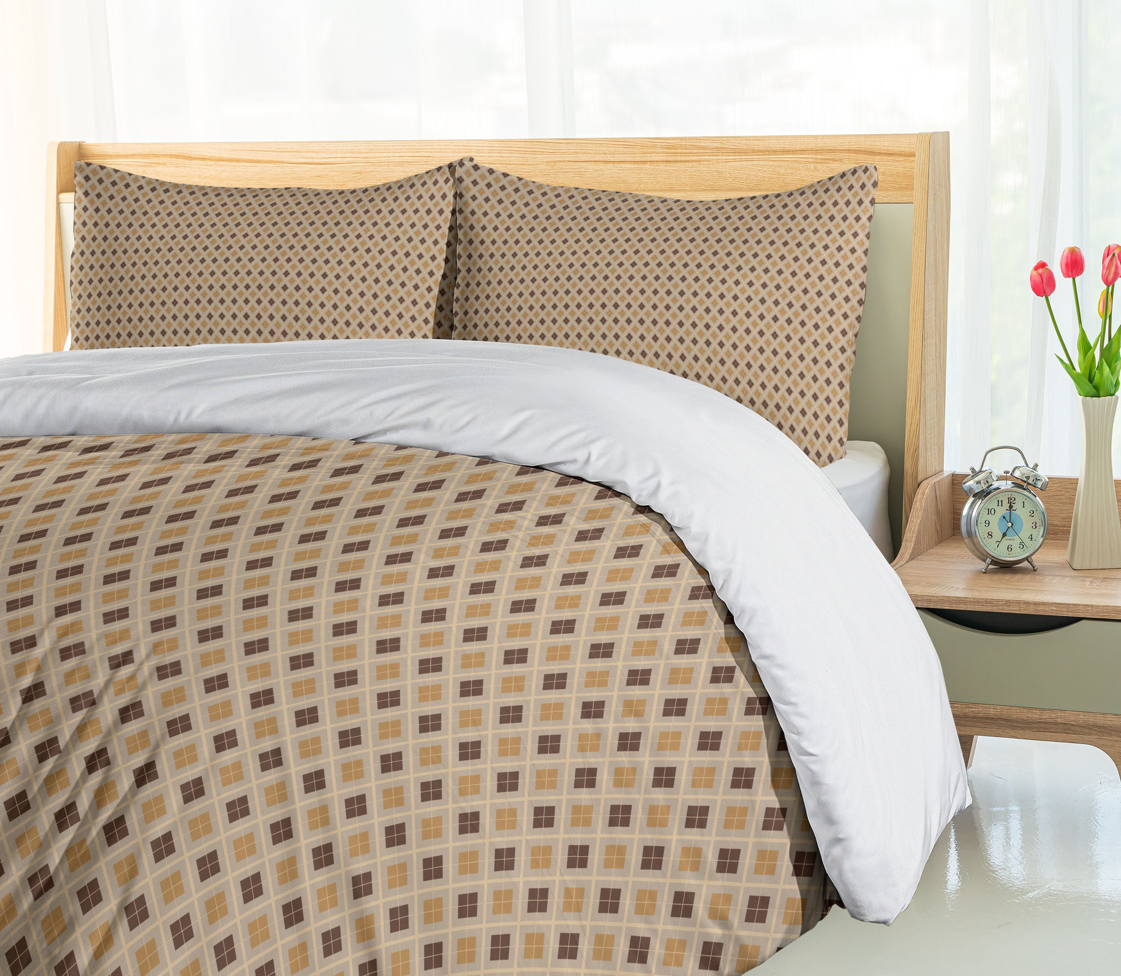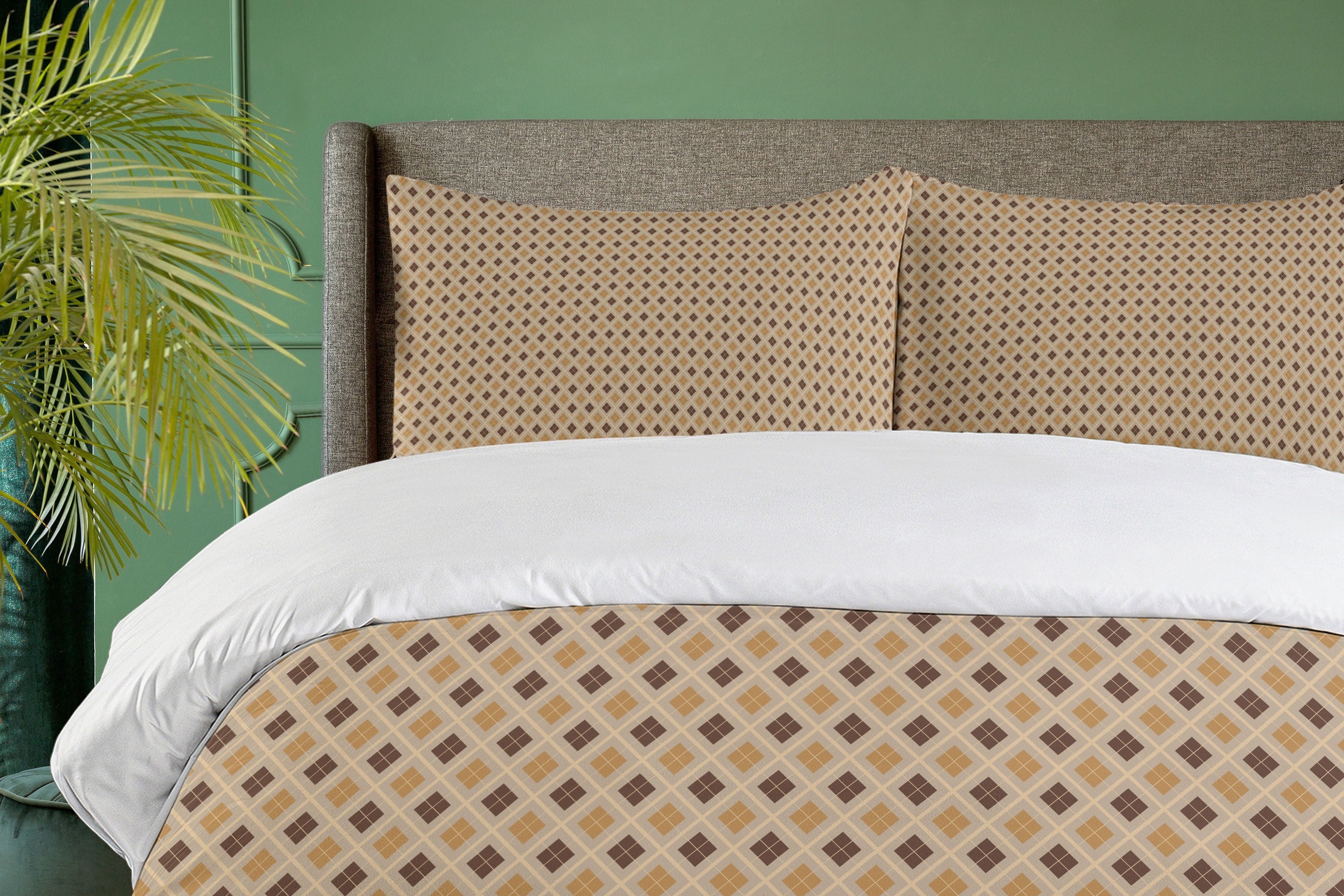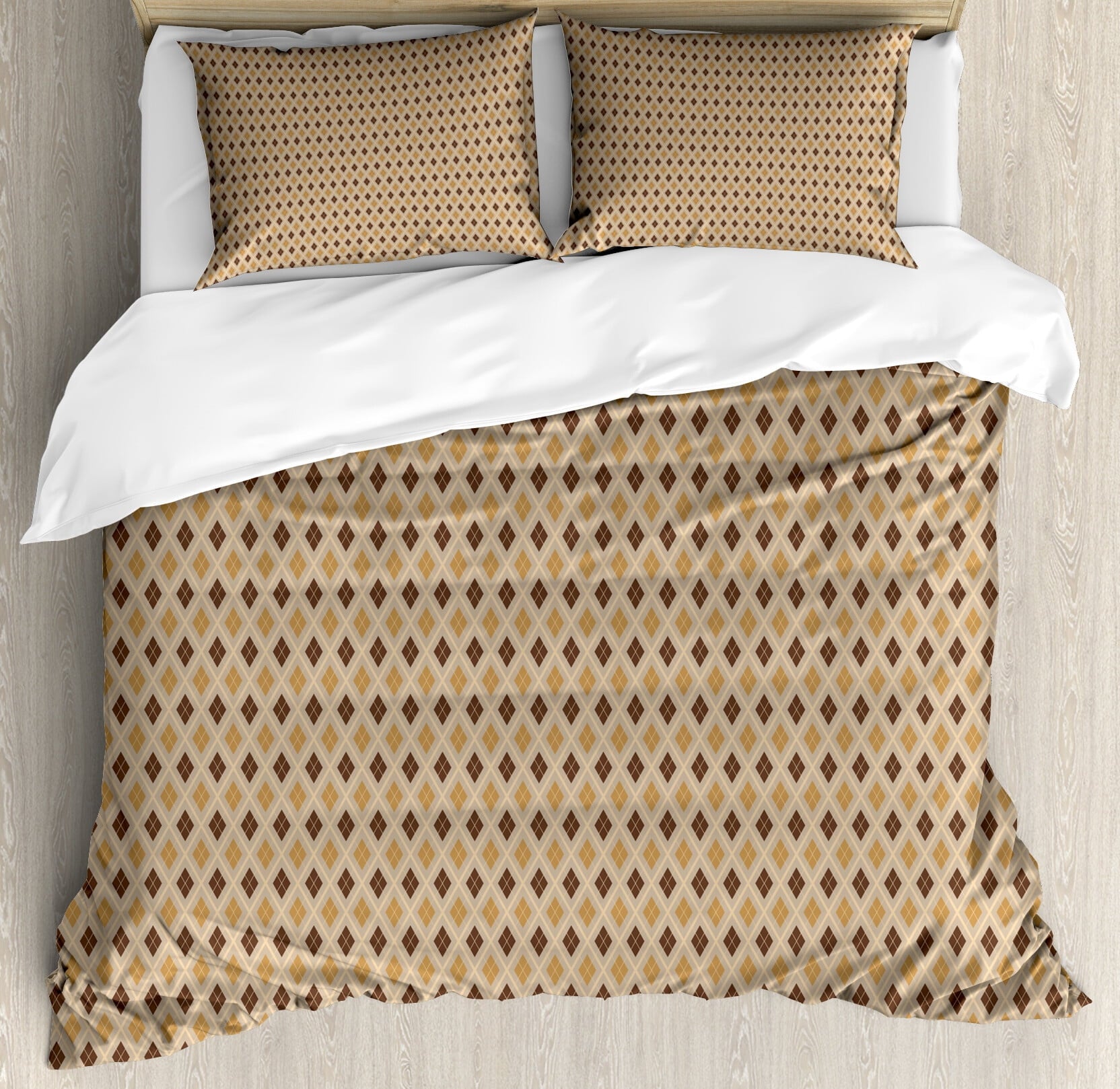 Home Bedding Sets Ambesonne Yellow Brown Duvet Cover Set, Retro Style Hexagons, Calking, Cocoa Brown