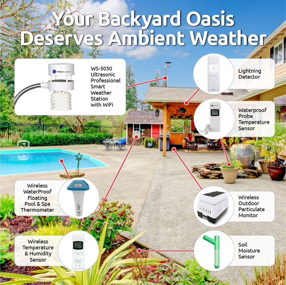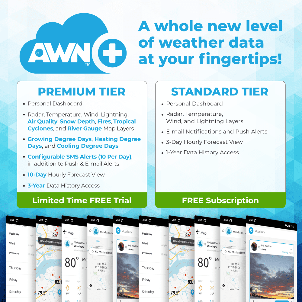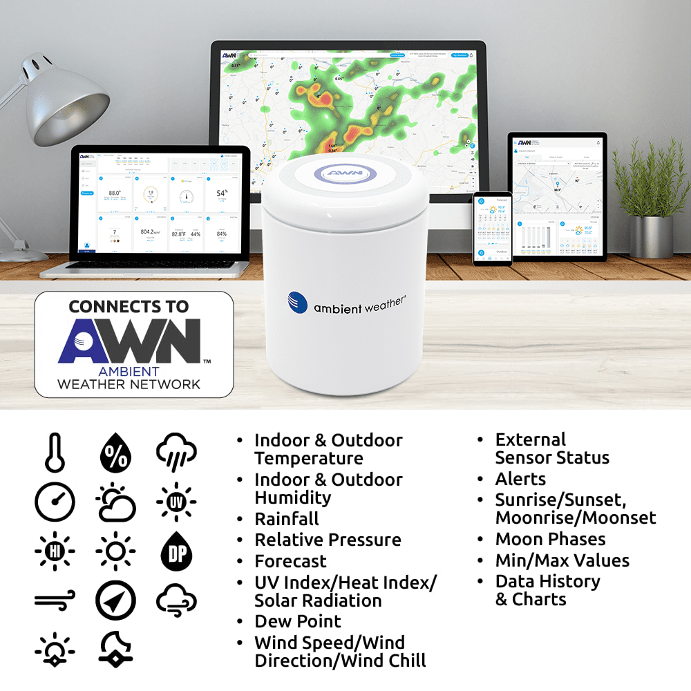 - JOIN THE COMMUNITY: Connect to Ambient Weather Network to customize your dashboard tiles, share hyperlocal weather conditions via social feeds and create your own forecasts (coming soon)