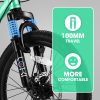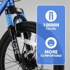 - 【Front Fork Shock Absorbing Design】Feature 100mm front suspension fork. The thickened shock absorbers help resistant and absorb shocks. The parallel bars can adapt to pressure road conditions. Greatly improve the comfort during riding and allows you to enjoy riding.