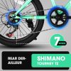 - 【7-Speed Drivetrain】— Classic 7 speeds rear derailleur creates the perfect bike to allow riders to easily tackle climbs. With Shimano twist shifter, kids can quickly select a gear for every terrain, and handle their imagination. It is truly the perfect bike to inspire young riders to climb higher and tackle the downhills freely.