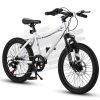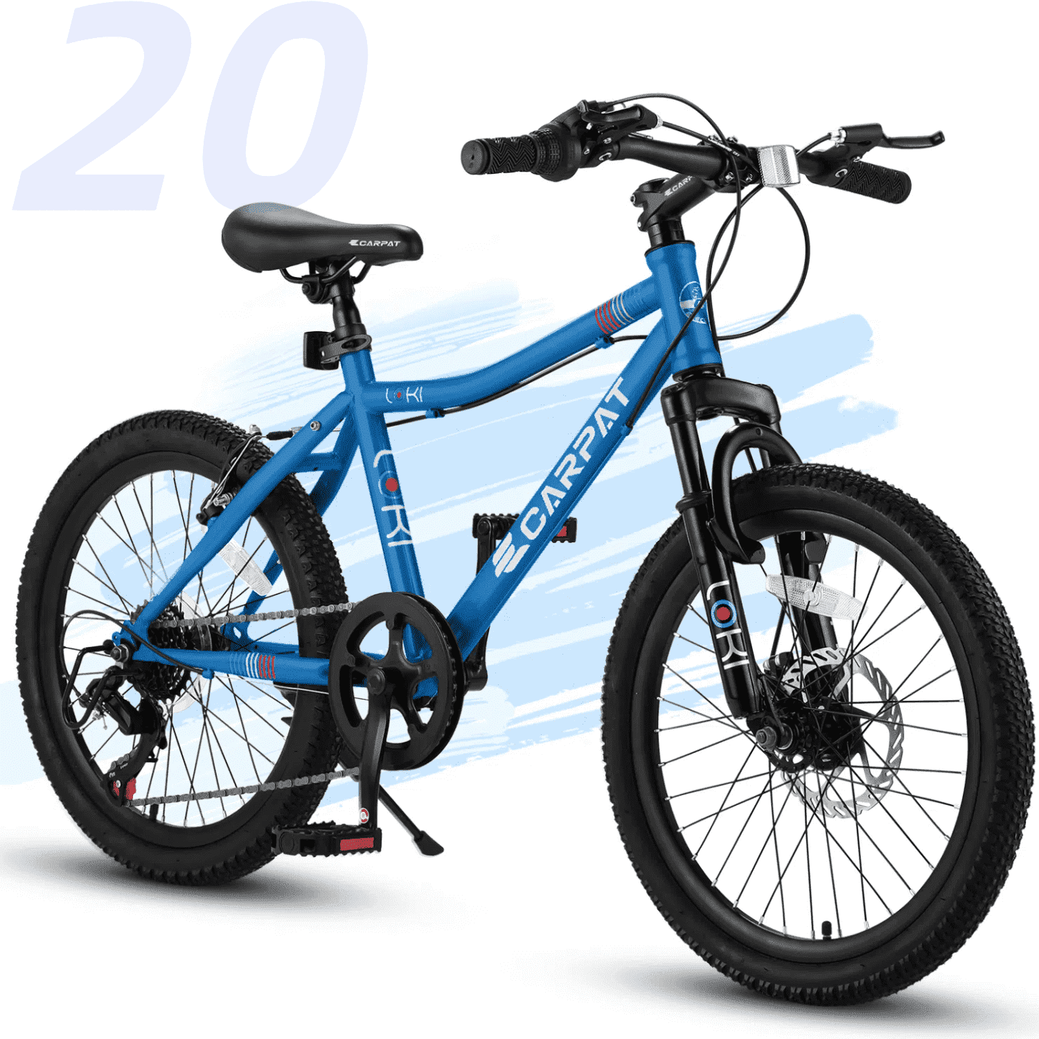20″ Kids Mountain Bike designed with younger riders in mind. It can help young children develop balance and coordination as they learn to ride. It’s a big jump in your kids bicycle riding evolution when they move up to a 20″ bike. Styled like a pro rider’s bike, this kid’s bike features adjustable saddle, 7-speed, disc+u brake system,durable steel frame.