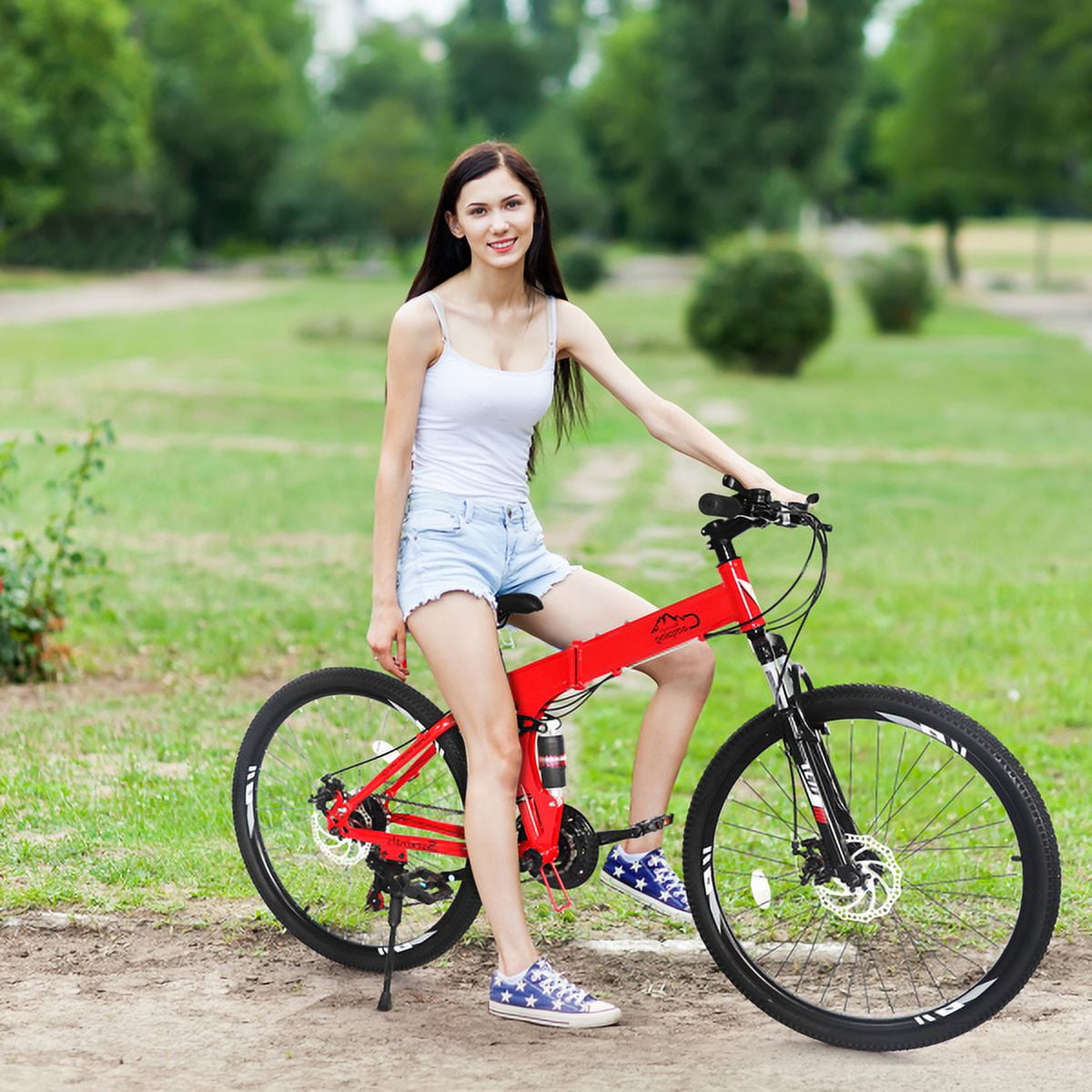 Home Bicycles Ambifirner 26 Inch Folding Mountain Bike Under 250$ Men Mountain Bike 21 Speed,High Carbon Steel ,Disc Brake Folding Bikes for Adults/Men/Women Red