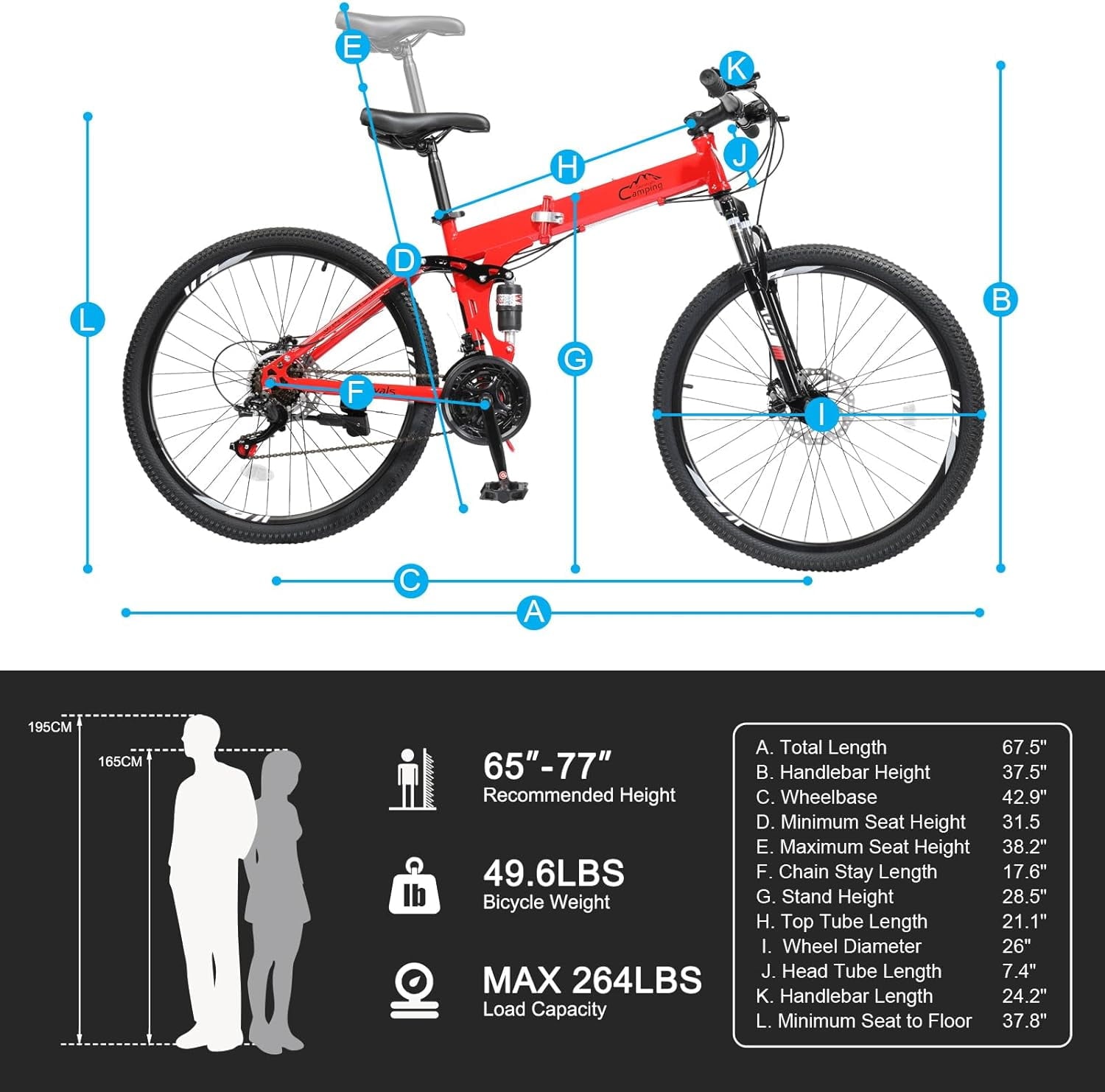 Ambifirner 26 Inch Folding Mountain Bike Under 250$ Men Mountain Bike 21 Speed,High Carbon Steel ,Disc Brake Folding Bikes for Adults/Men/Women Red