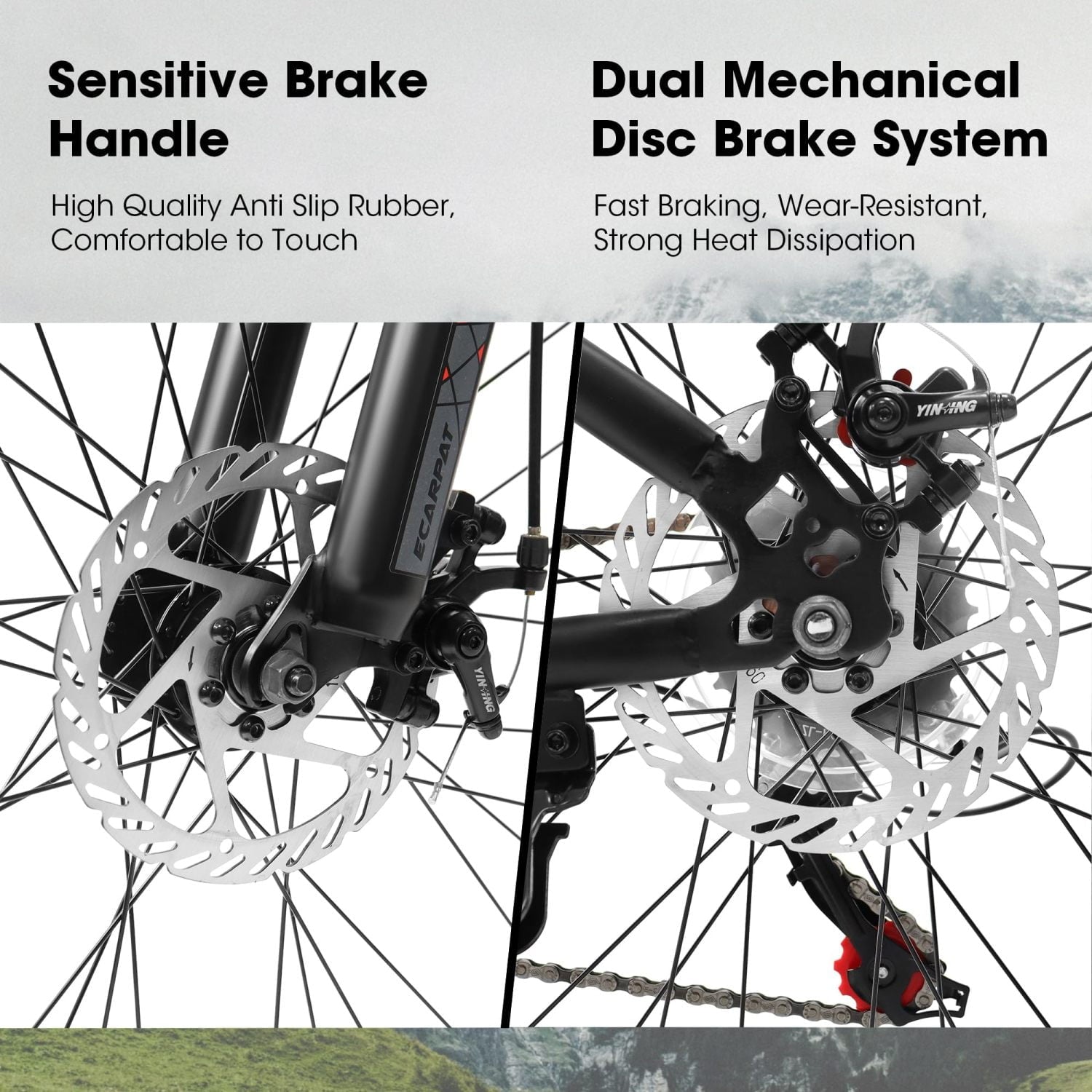 - 【Front and rear dual disc brakes】Dual disc brakes for more precise and tight parking and control.