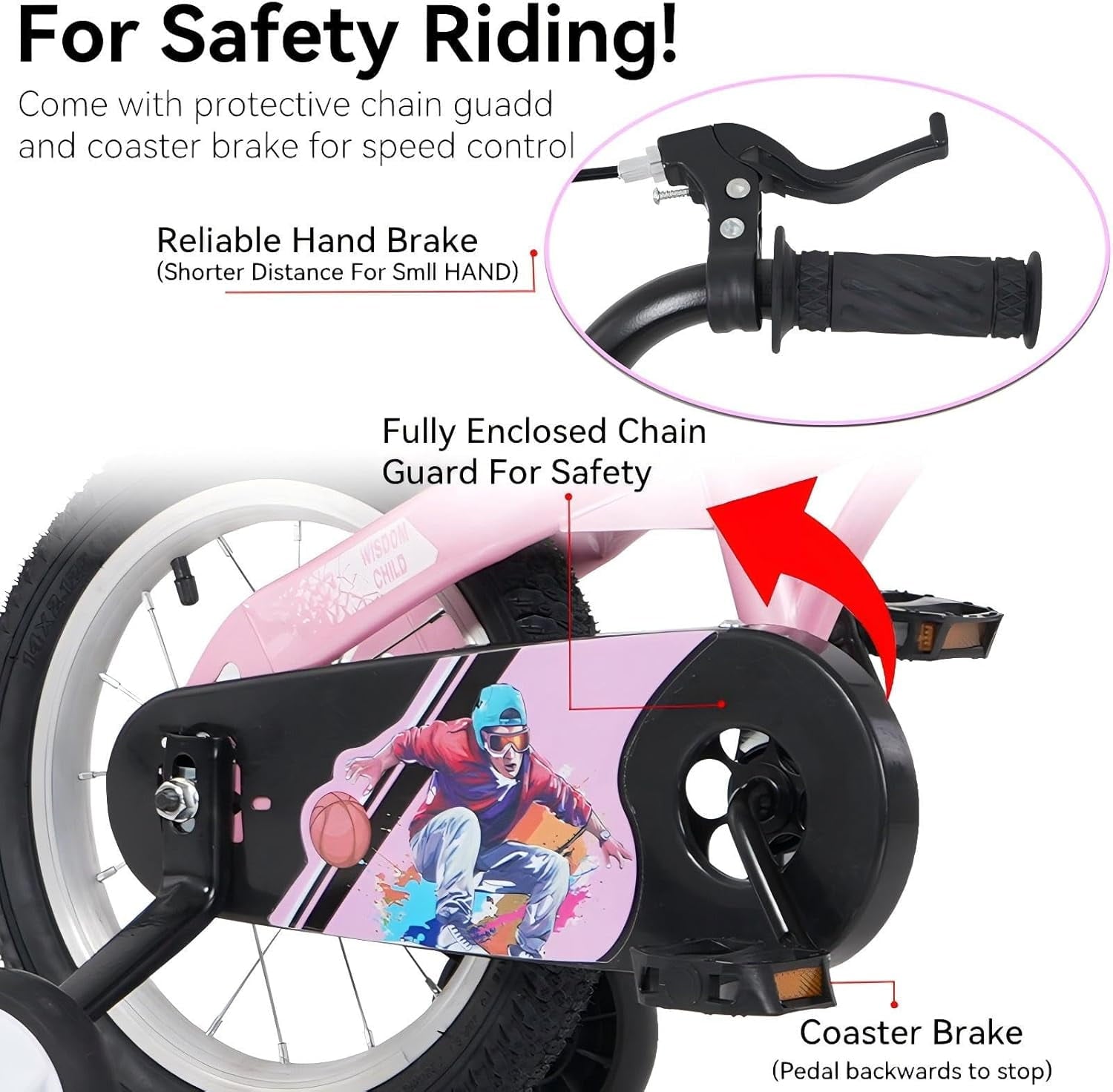 - 【Dual Braking System】 Combines easy-to-use V-brakes (hand brakes) and coaster brakes (pedal-back braking) to help children stop confidently.