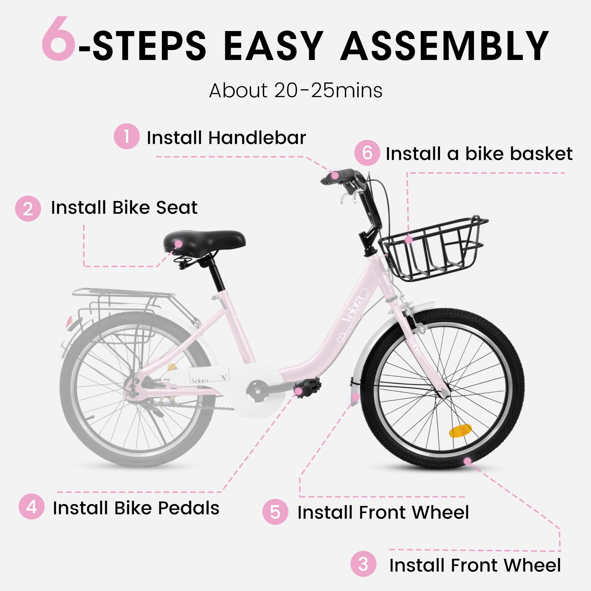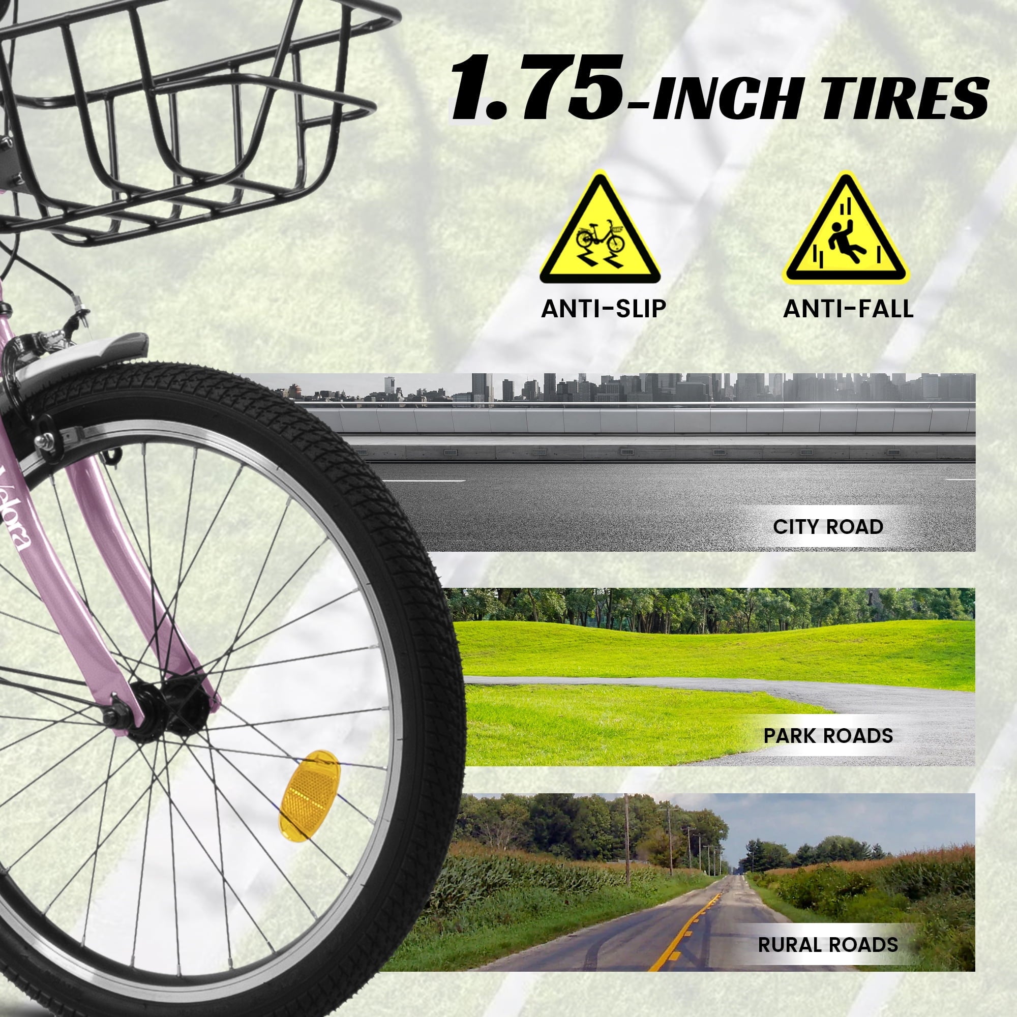 - 【Ideal Size for Young Riders】 This 20-inch bicycle is designed for kids, featuring a lightweight frame and 20″ x 1.75″ tires for balance and control on sidewalks and paved paths.