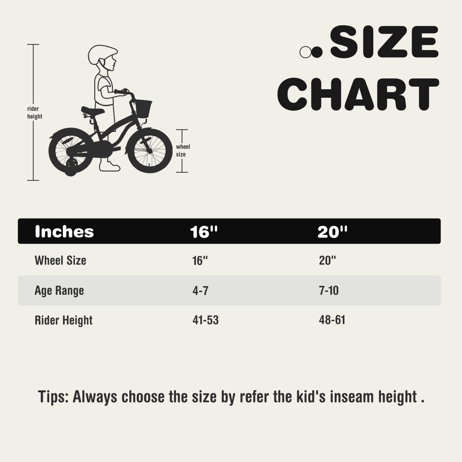 Suitable for age: The 16” bike is for children 4 – 8 years old or 40 – 51 inches tall