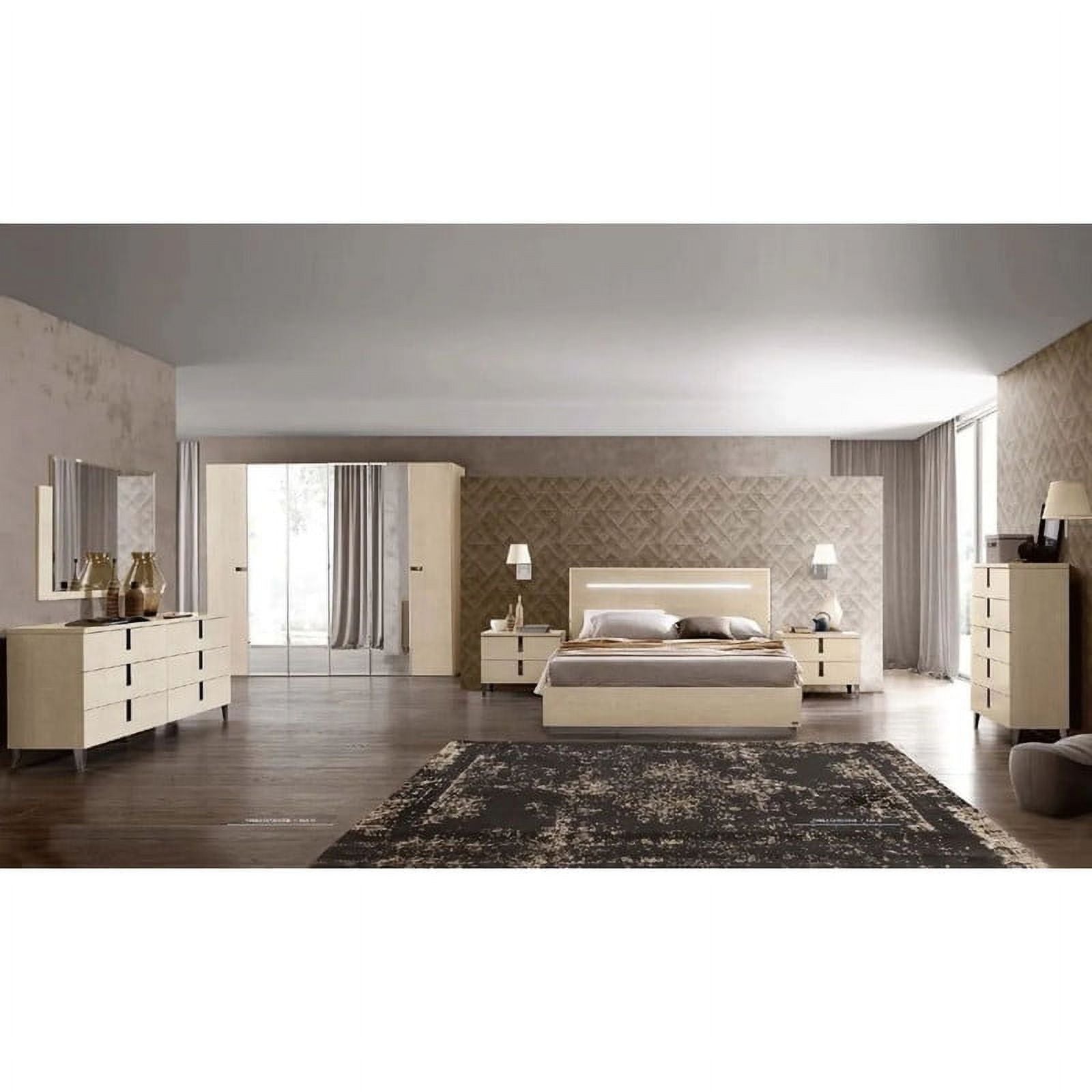 Experience the perfect blend of form and function with our Wooden Headboard Bed with Lights and the Ambra collection. Elevate your bedroom to new heights of beauty and sophistication, embracing the allure of chiaroscuro and the captivating allure of Black Nickel details. Invest in a bedroom ensemble that embodies luxury and brings a touch of enchantment to your daily retreat.