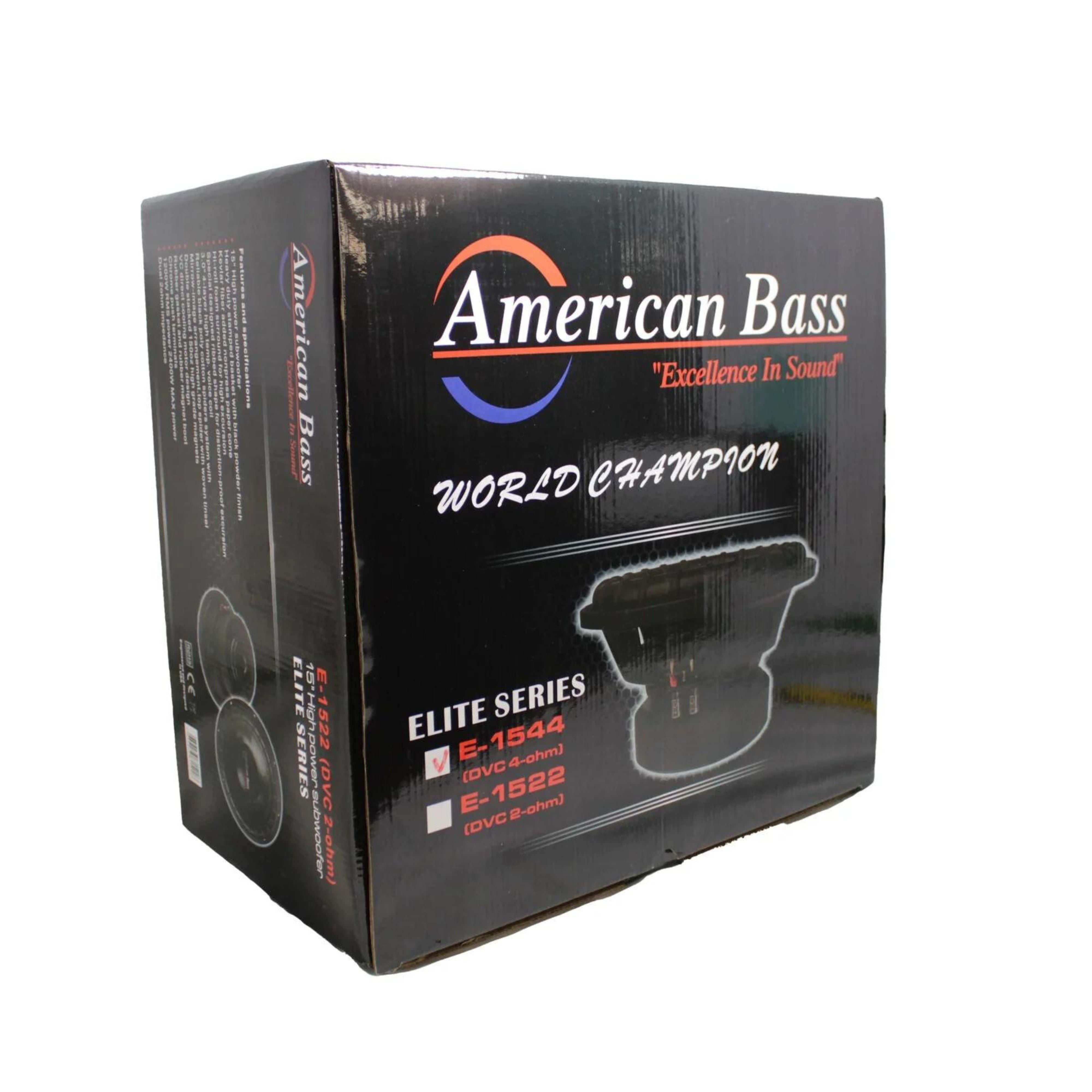 AMERICAN BASS ELITE1544 Elite Series 15-inch Subwoofer 1200 RMS 2400 Peak 3″ Voice Coil Woofer SPECIFICATIONS RMS POWER : 1200W MAX POWER : 2400W IMPEDANCE OHMS : D2 / D4 SENSITIVITY DB : 87.3 SPECIFICATIONS MOUNTING DEPTH IN : 7.71 CUTOUT SIZE IN : 13.5 PORTED BOX FT3 : 3.25 MAGNET SIZE OZ : 150 VOICE COIL SIZE : 3″ BASKET TYPE : STAMPED RECOMMENDED AMP PAIR : VFL 2.5K Looking to get the power of an XFL subwoofer without breaking the bank? Youre in luck! American Bass Elite Series subs pack a mighty punch and are close in performance to the XFL – except these bad boys don’t come with a hefty price tag. Packing a whopping 150oz stacked magnet for maximum efficiency, plus a fiber-added non-pressed cone and hi-roll high-density foam surround with double stitching, you can ensure your sound is pumping at all times. American Bass doesn’t mess around – each sub woofer has a 3 hi-temp 4-layer voice coil on an aluminum bobbin for up to 2400 Watts Max of power handling. Don’t suffer through dull, flat music any longer – get an American Bass Elite Series subwoofer and feel like royalty with audio perfection. American Bass is a manufacturer of high-end car audio equipment & accessories such as subwoofers, amplifiers, and installation products. We have been in business for over 35 years and are world-renowned for our quality audio products.